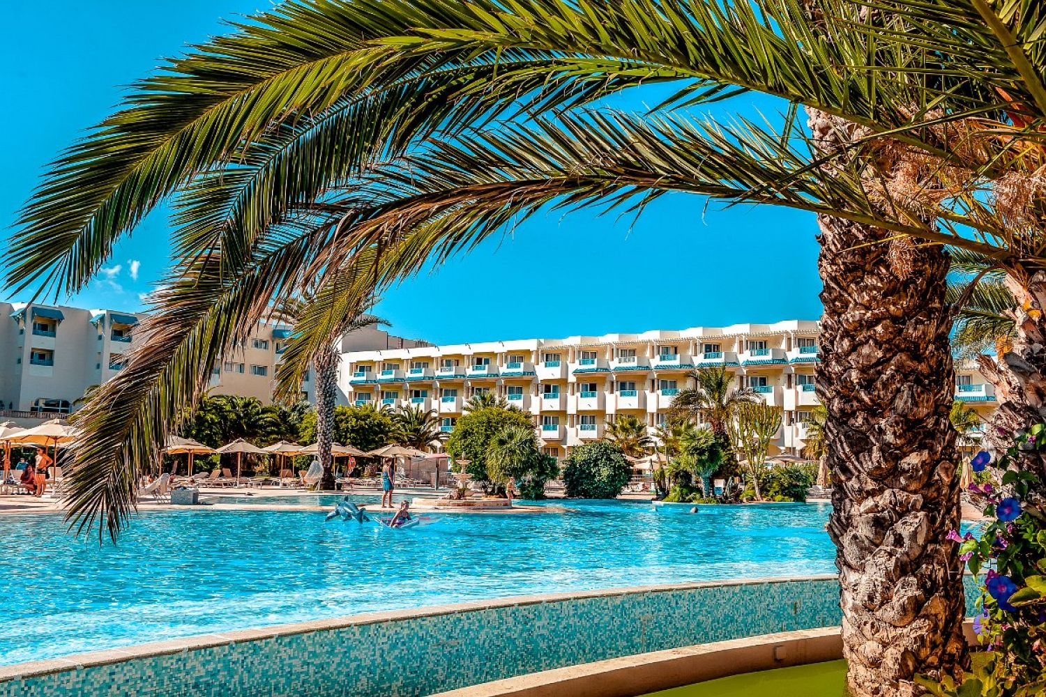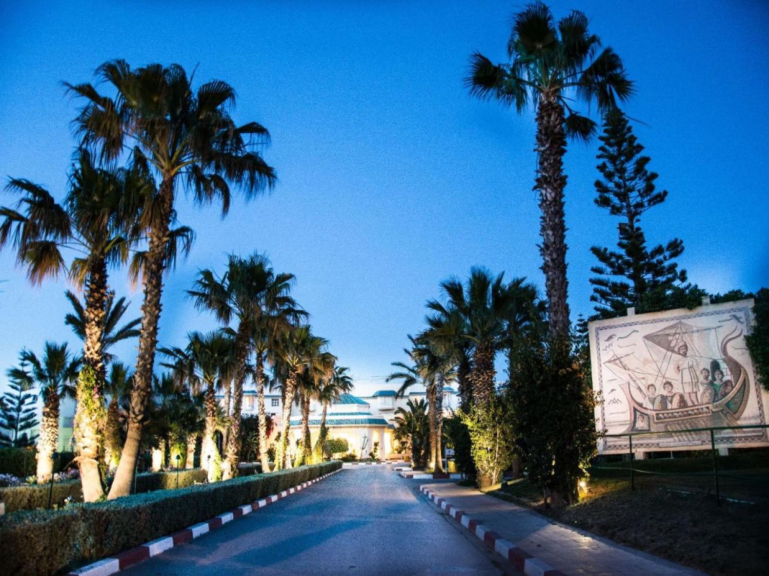 Основен ресторан Le Grenadier, а ла карт ресторант L'Olivier със средиземноморска кухня (платен, работи през летния сезон), а ла карт ресторант Le Laurier с тунизийска кухня (гостите могат да ползват едно безплатно помещение с предварителна резервация), лоби бар El Bey, бар басейн, снек бар, бистро бар La Vague, мавританско кафене, анимация, конферентни зали, сувенирен магазин, СПА център, химическо чистене, външен и вътрешен басейн.