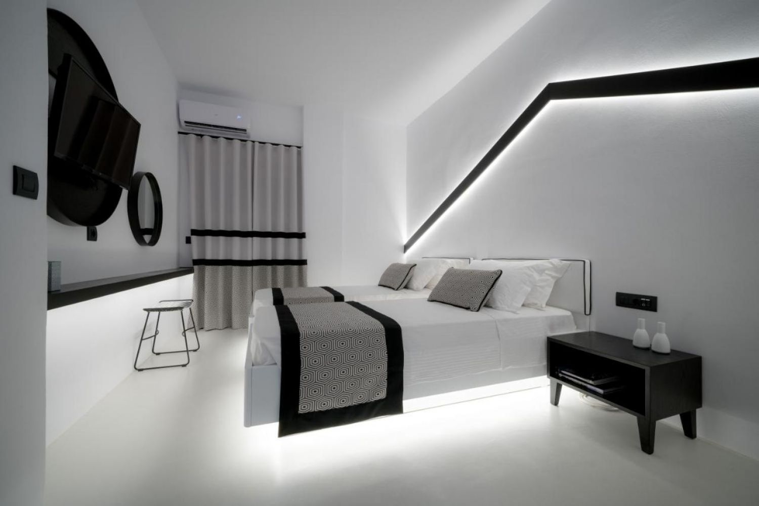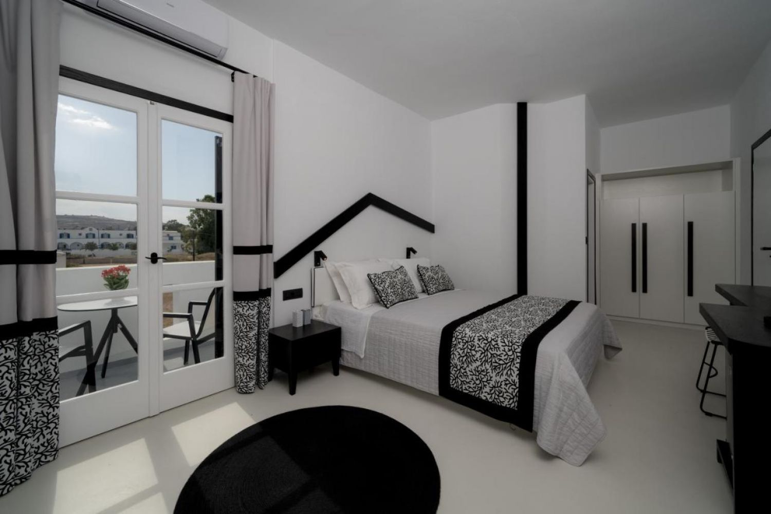 Красив комплекс от 19 стаи и апартаменти с традиционна цикладска архитектура и изискан дизайн. Всички стаи разполагат с просторна спалня, баня с душ, веранда или балкон с кът за сядане и удобства в стаята като индивидуално контролиран климатик, телефон с директно избиране, мини-хладилник, удобства за приготвяне на кафе и чай, сешоар, сейф, и сателитна телевизия. Имотът разполага и с плувен басейн заедно с бар край басейна, шезлонги с чадъри.