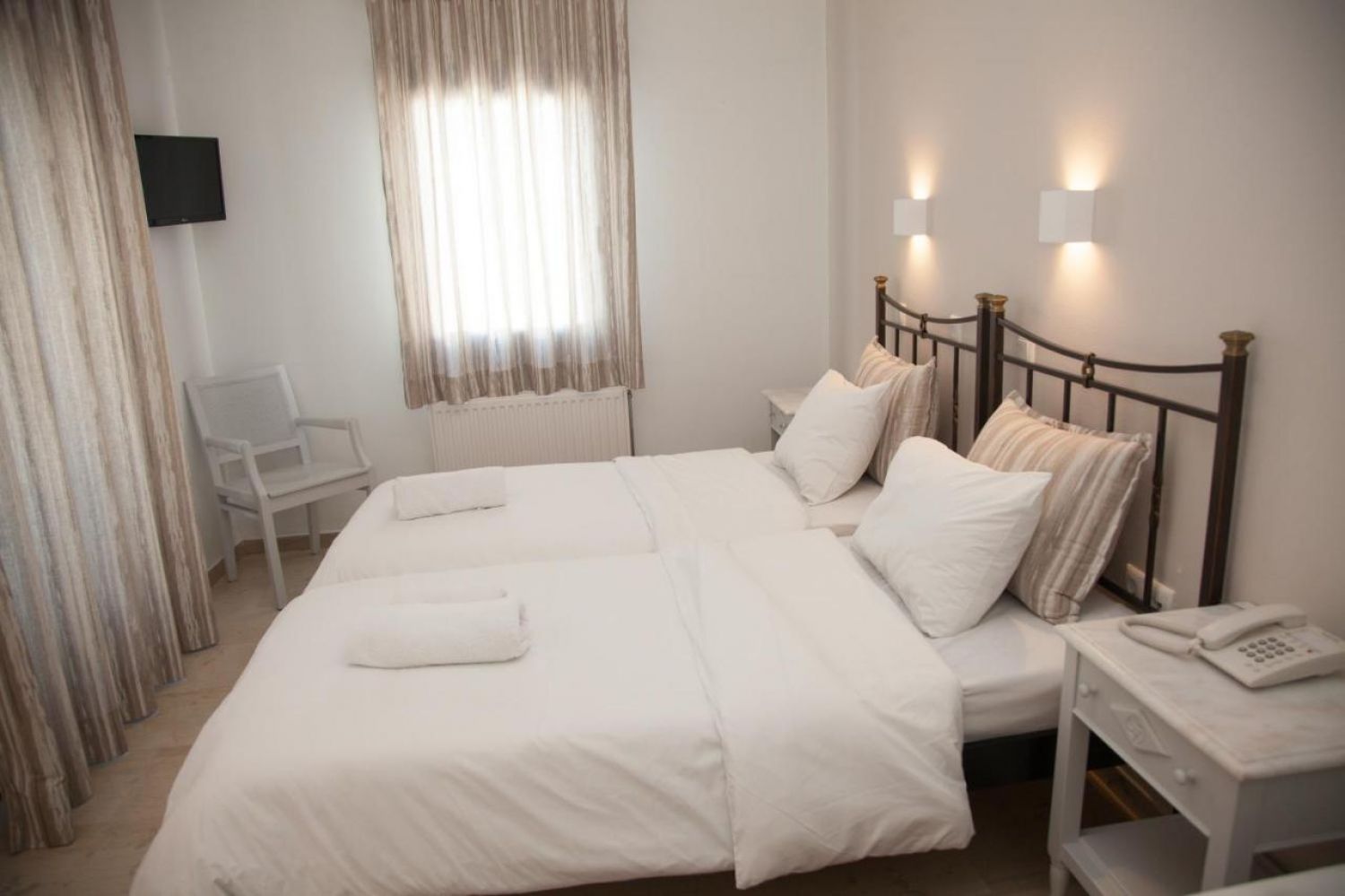Малък хотел, построен в класически стил, в центъра на град Фира, на централния площад. Хотелът работи целогодишно и предлага комфортно настаняване, топла и уютна атмосфера,на 6 км от летището и на 11 км от пристанището.