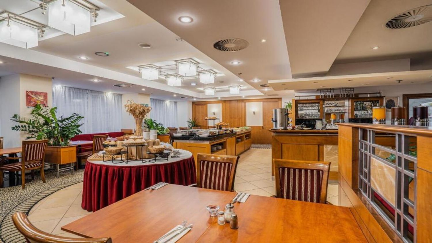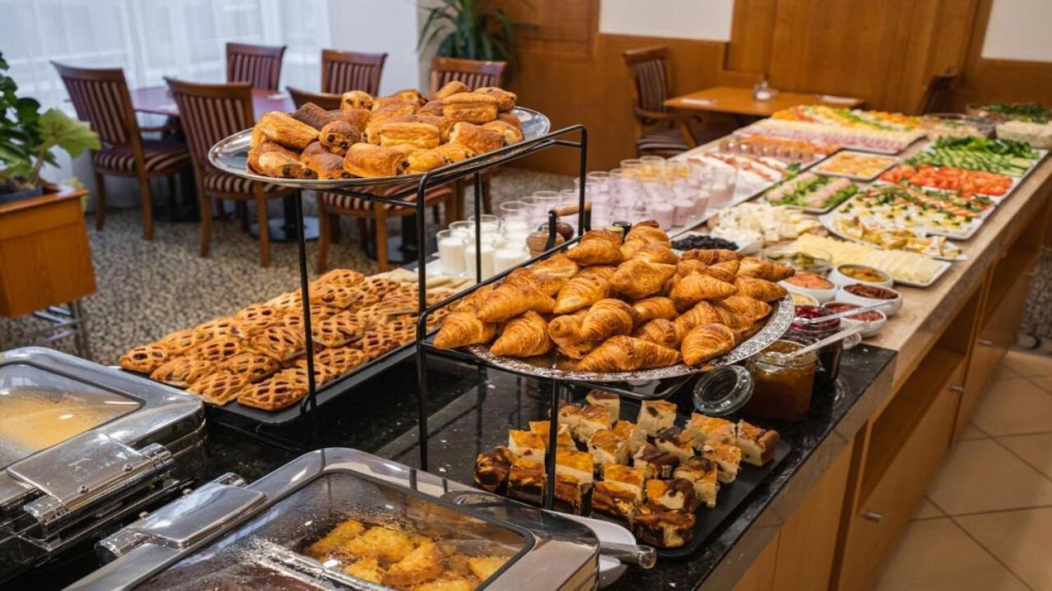 - Закуската е на богат бюфет, включваща пресни плодове, месни и млечни продукти, сладкиши, яйца, зърнени и горещи напитки ;