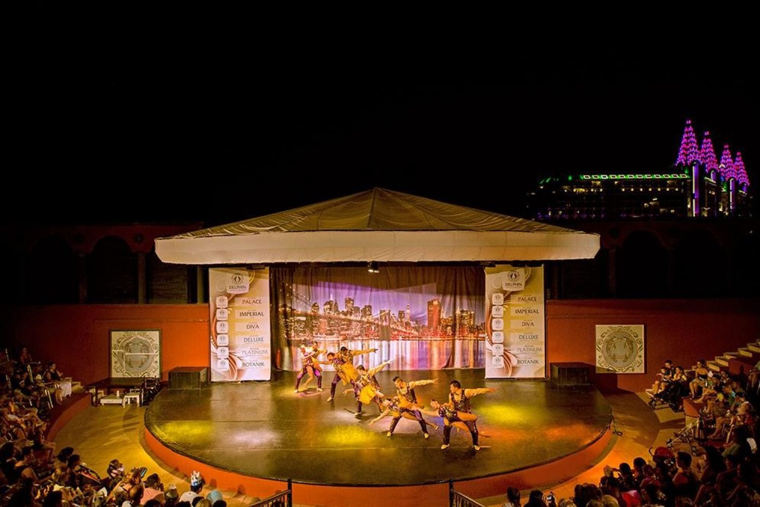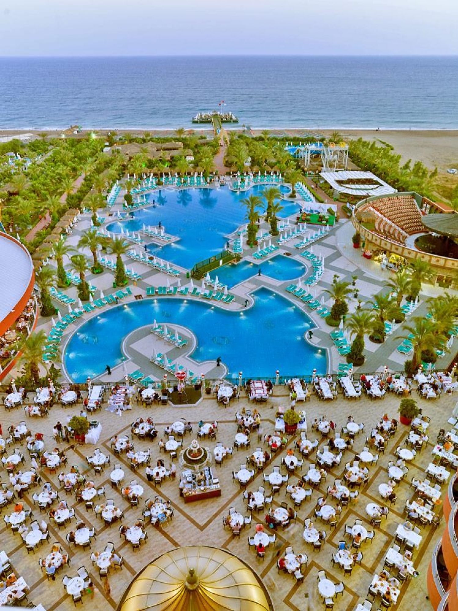 На територията на хотела: Хотелът предлага безплатен Wi-Fi във фоайето. Предлагат се и конферентни зали и амфитеатър под наем. Гостите могат да се възползват от медицинските услуги на хотела, обмяна на валута, паркинг, коли под наем, салон за красота, магазини и пералня. Освен това има открити и закрити басейни с различни размери, включително басейн с пързалки. Основният ресторант "Делфин" е отворен от 7:00 до 21:00 часа. Ресторантите а ла карт предлагат разнообразие от кухни, включително турска, италианска, японска, китайска, мексиканска, гръцка и рибна кухня. Те са отворени от 19:00 до 21:30 часа. Хотелът разполага още с кафене Avanti, лоби бар, бар Joia, бар край басейна и снек бар Palm. Диско барът е отворен от 23:00 до 02:00 часа.