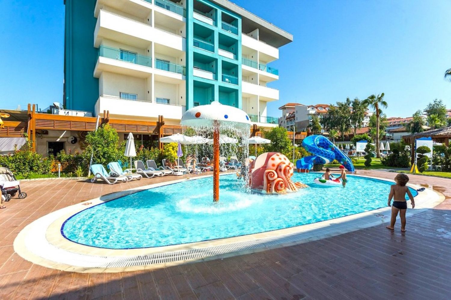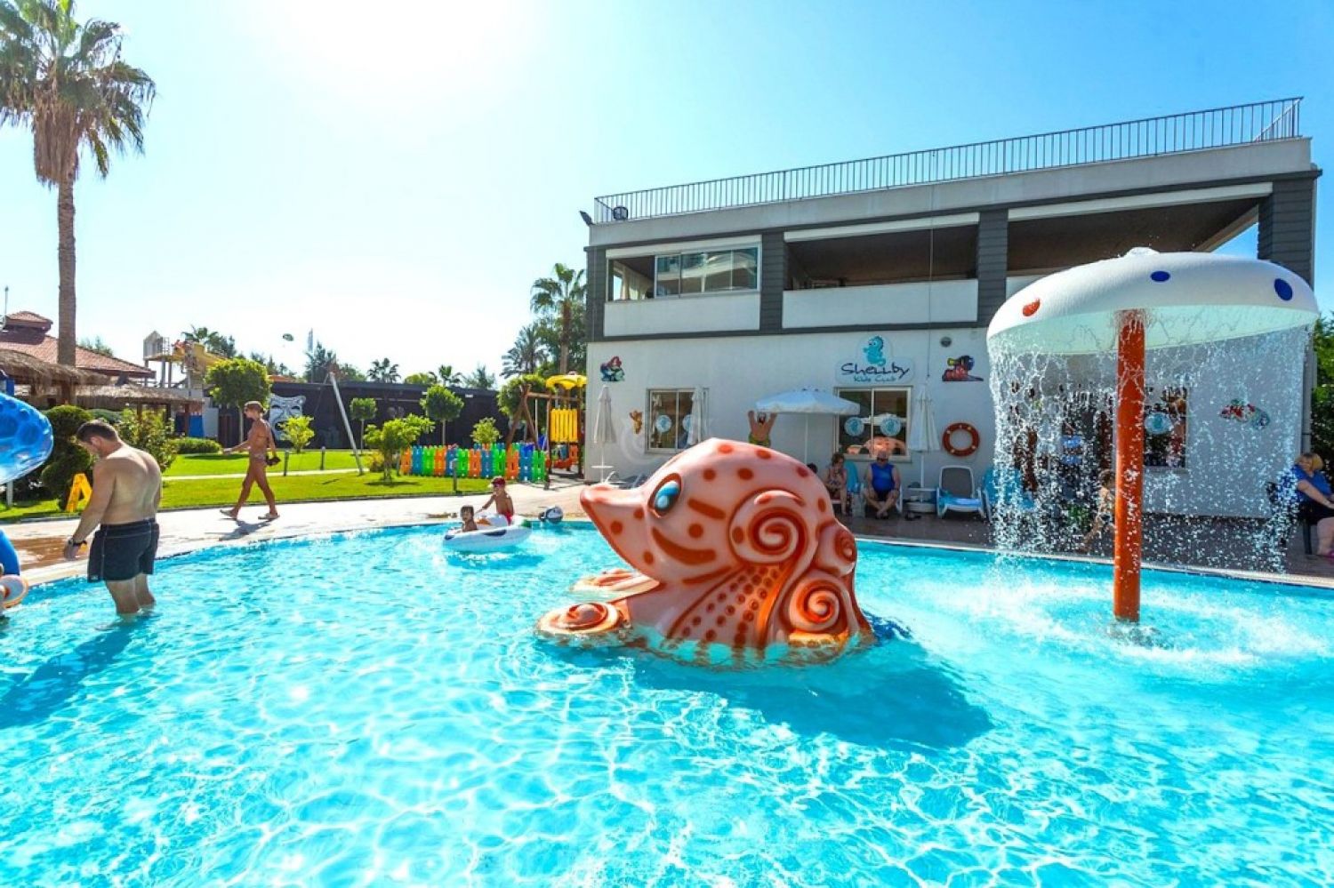 Анимационни програми: Гала вечер, партита край басейна, парти с пяна, тематични вечери, тенис на маса, дартс, плажен волейбол, боча, водна топка, водна гимнастика, упражнения за разтягане на мускулите, игри в басейна, вечерна програма.