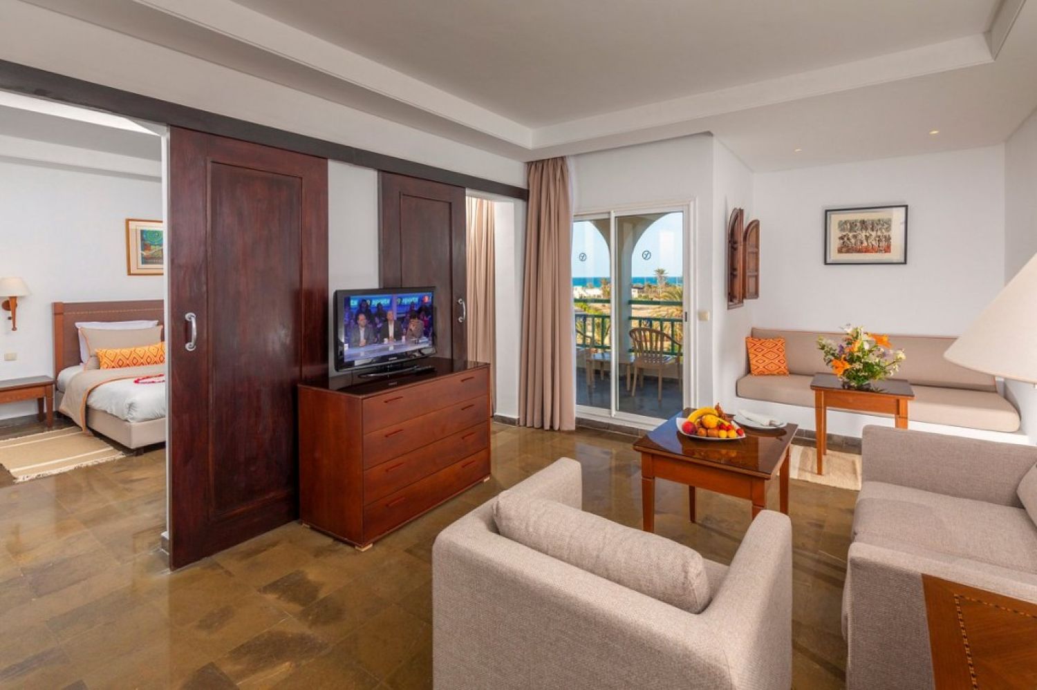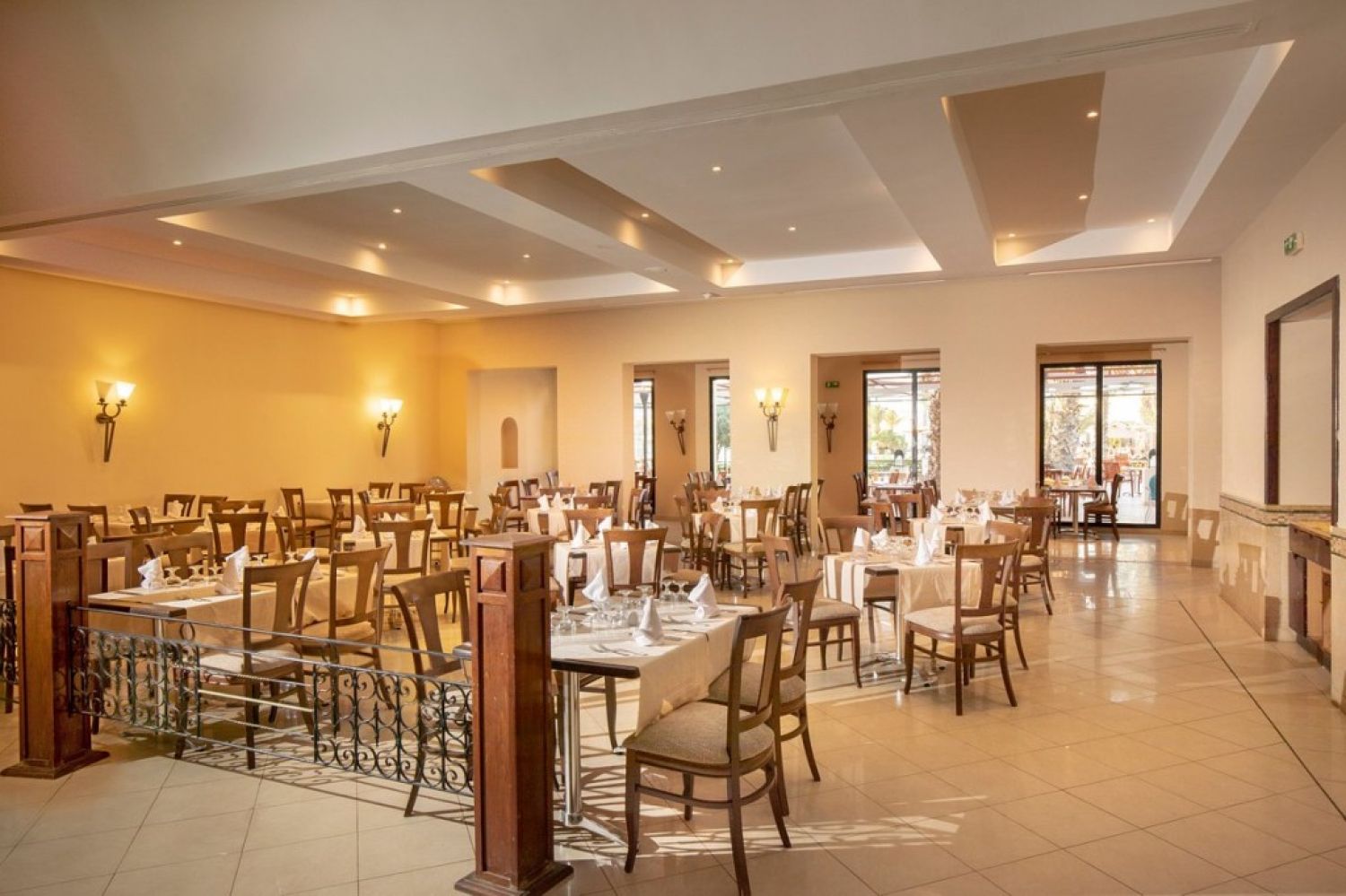 Ресторанти и барове: ресторанти: 1 (основен “Ulysse”с шведска маса: международна кухня, диетично меню), 1 плажен ресторант “La Marsa” от юни до септември - платено, 1 ресторант до басейна “El Kastel”, Ресторанти a la carte: 1 (“omar khayam/alcazar” , с тунизийска тематика, с предварителна заявка 1 път за целия престой), Meninx bar – безплатен, pool bar “Oasis” - безплатен, beach bar “Le Phare” – безплатен, café maure “Halfaouine” – платено, night bar “Adonis”- платено, Piano bar “Le Swing” - платено