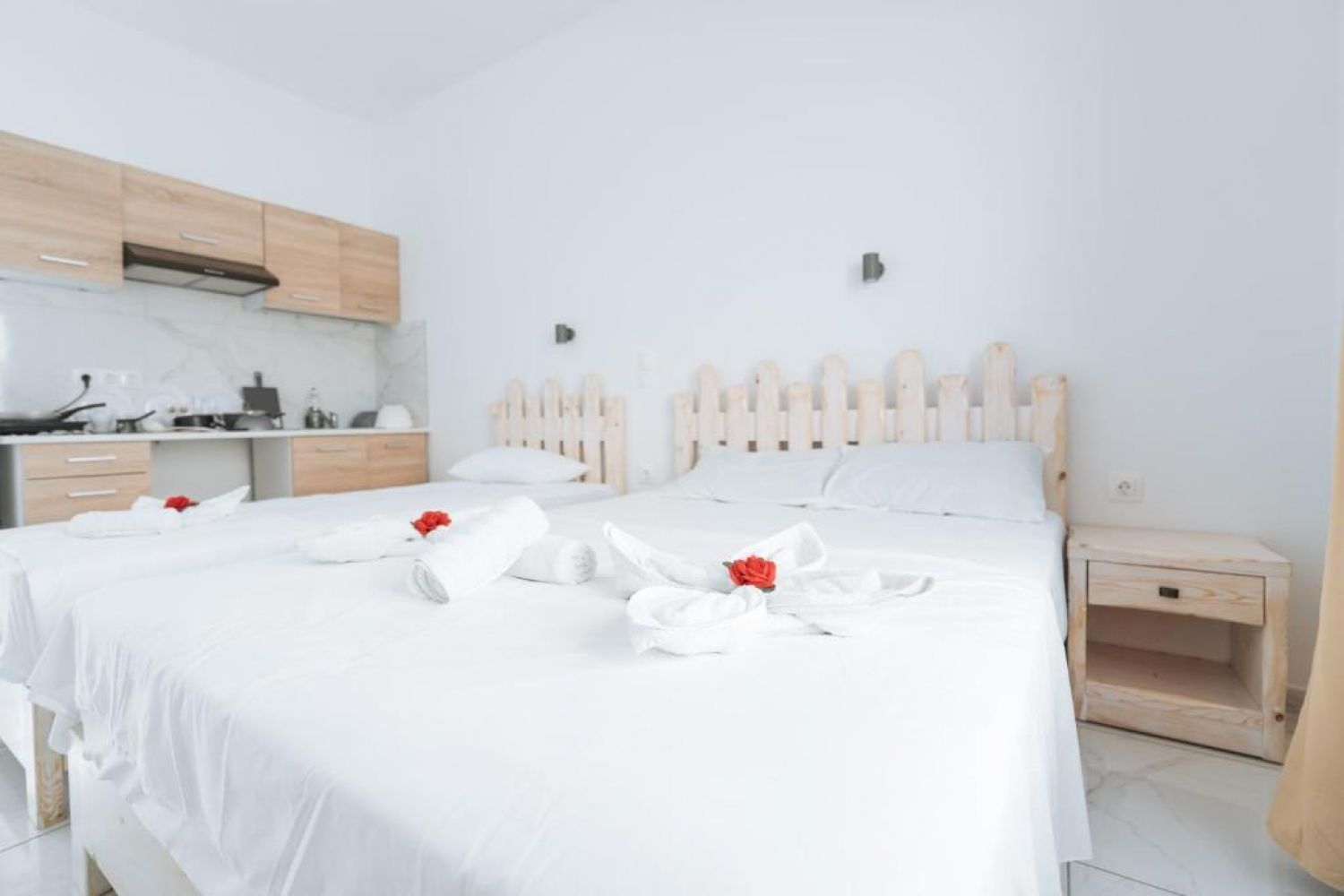Хотелът разполага с модерно обзаведени стаи и студиа, които предлагат климатик, телевизор, мини хладилник, сешоар, wi-fi интернет, балкон или тераса.