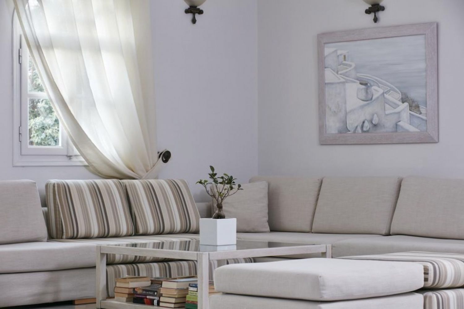 Хотелът се намира на 9 км от столицата Фира, в селището Камари, на 50 м. от брега на морето. Построен през 2001 - 2002 г. в традиционна цикладска архитектура и изцяло реновиран през 2014 г.