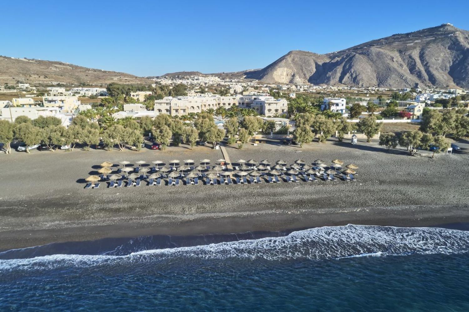 Едно от най-популярните ни места за настаняване в Периволос.Този крайбрежен хотелски комплекс е разположен на известния космополитен плаж на Периволос, на югозападната страна на Санторини. Той разполага с най-голямата зона с басейни от всички хотели в Периволос - Периса и неговата частна зона на плажа с черен пясък в Периволос с шезлонги и чадъри, които са безплатни за гостите на хотела. Хотелът е разположен в близост до туристическото селище Периса със своите магазини и таверни, както и дълъг плаж със скалата Меса Вуна, която се подава от водата.
