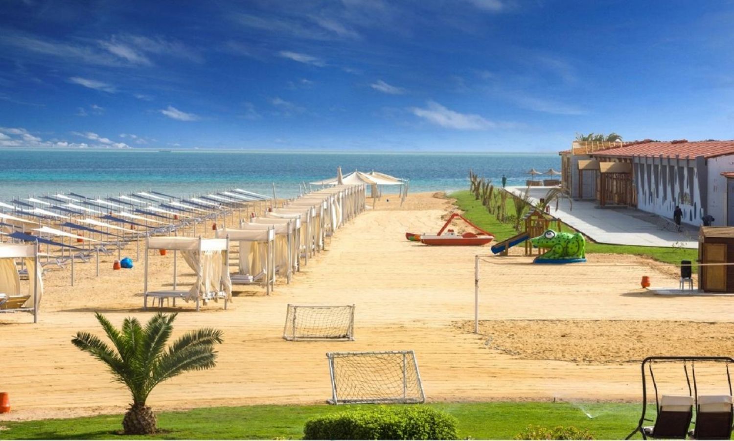 Собствен пясъчен плаж със залив. Чадъри и шезлонги при басейна и на плажа - безплатни. Плажни огради за защита от вятъра. Плажни кърпи – безплатно.