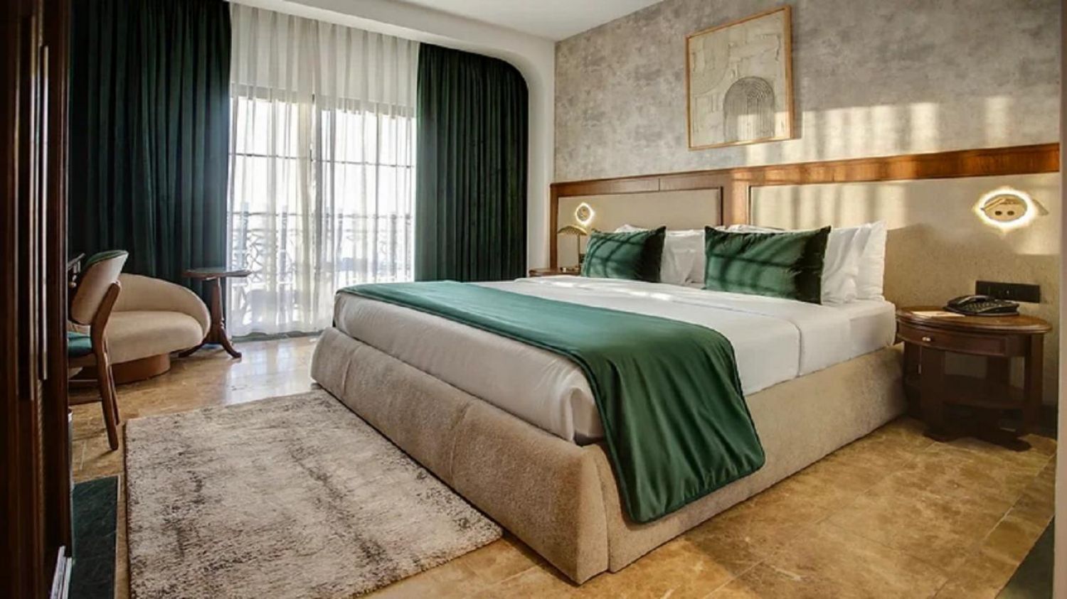 На разположение на гостите са 43 стаи, които са оборудвани с балкон, климатик, сет за кафе и чай, мини хладилник, баня с душ, сешаор и тоалетни принадлежности.