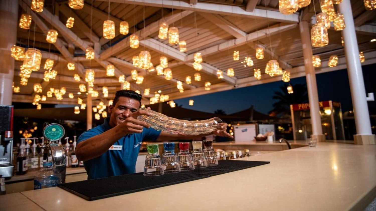- The Blue Lagoon Bar е бар на открито с гледка към лагуната, където гостите на хотела могат да се насладят на своята напитка, докато се излежават в своите шезлонги под лъчите на топлото египетско слънце.