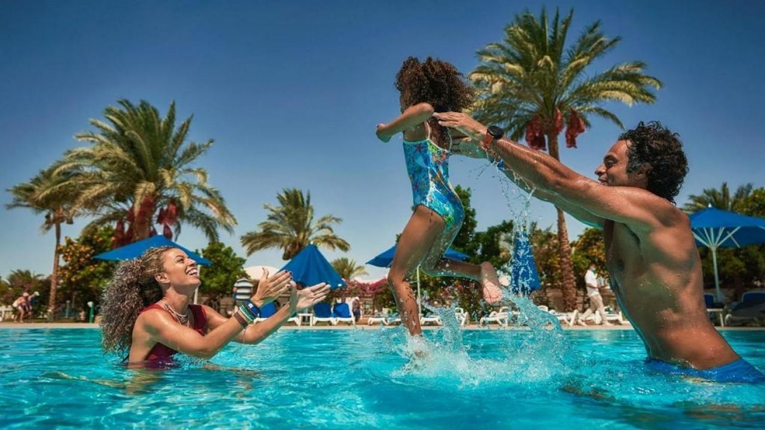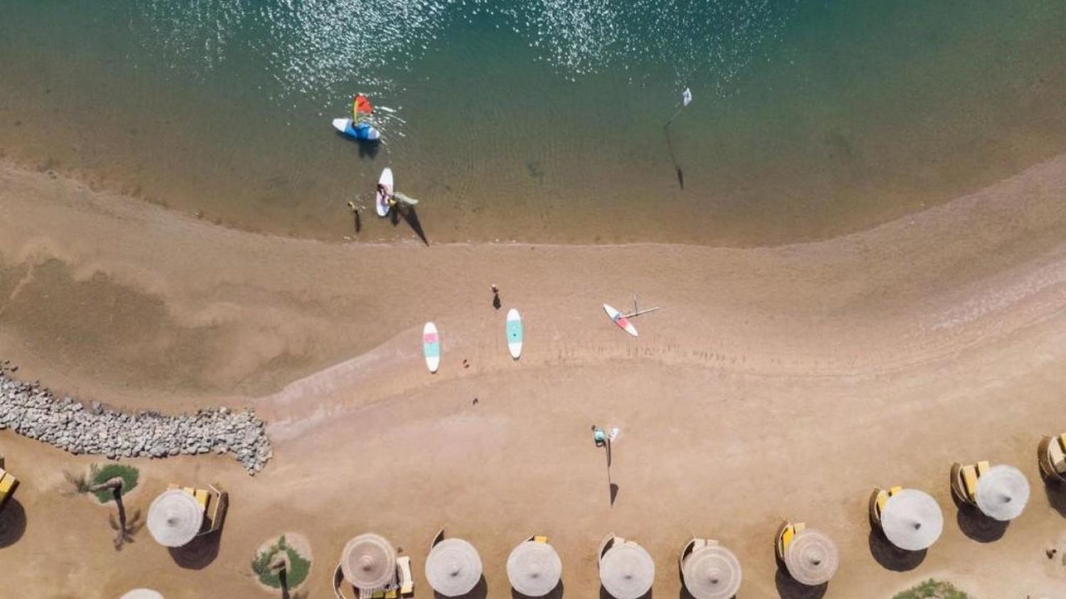 Desert Rose 5* разполага със собствен девствен пясъчен плаж с дължина от 1км, с 40 000 м² природна лагуна със златист пясък. Хотелът предлага на своите клиенти идеална атмосфера за забавления или просто да се насладят на прекрасния ненадминат климат на Червено море. Хотелът разполага с 4 плувни басейна, 1 с олимпийски размери, голям плувен басейн с палуби за слънчеви бани и бар край него, отопляем семеен плувен басейн и детски плувен басейн, специализиран за бебета и малки деца със собствен мини душ и мини столове. Като допълнение Аквапаркът предлага още и 6 водни пързалки.