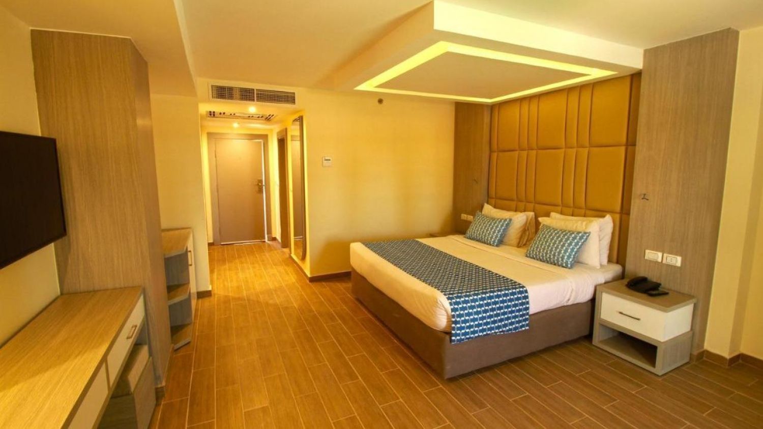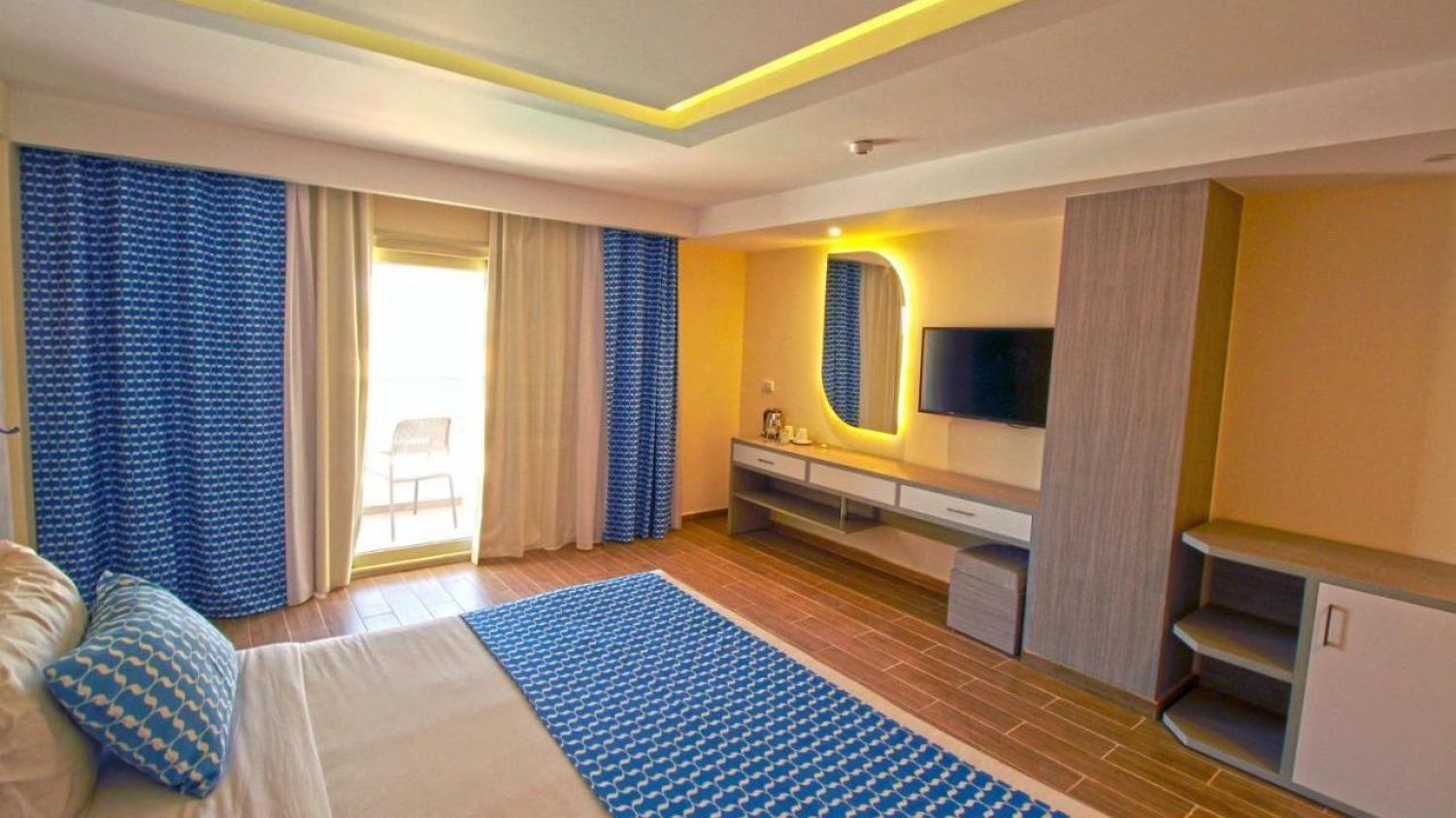 Приблизителна площ на стаята - около 28-32 кв.м. Разполага с телефон, сателитна телевизия, сешоар, сейф, мини бар - срещу допълнително заплащане, електрическа кана с чай и кафе, климатик, баня с тоалетна, балкон или тераса.