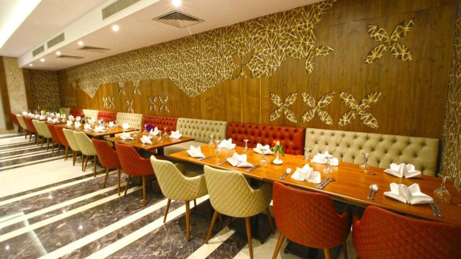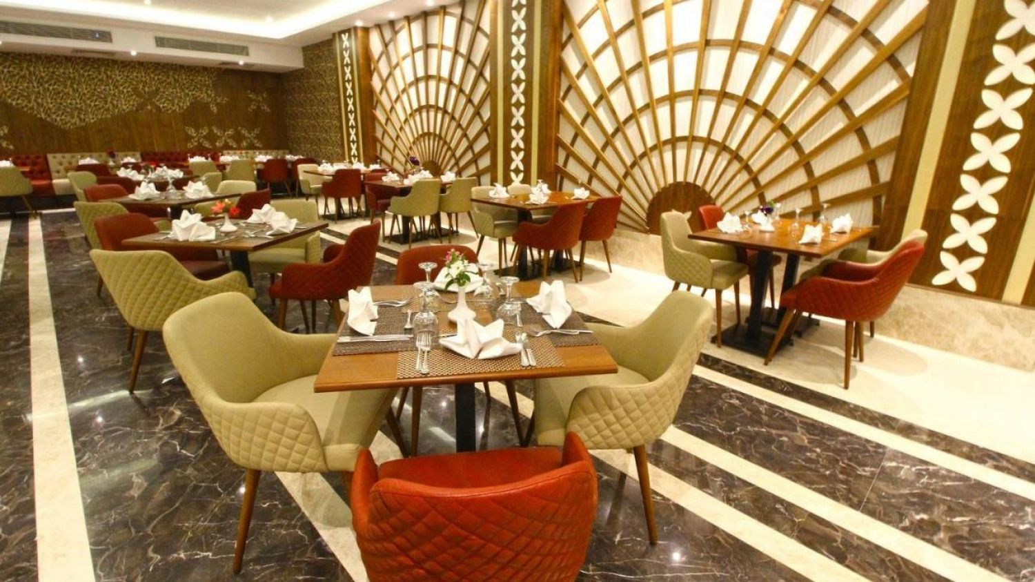 Предлага бюфетно изхранване за закуска, обяд и вечеря и е отворен 24 часа, за да обслужва всички гости с всякакви храни или напитки, включително детски кът през деня. Бюфетът включва разнообразие от кухни, които отговарят на всички вкусове и изисквания, включително тематични вечери със специални ежедневни кухни.