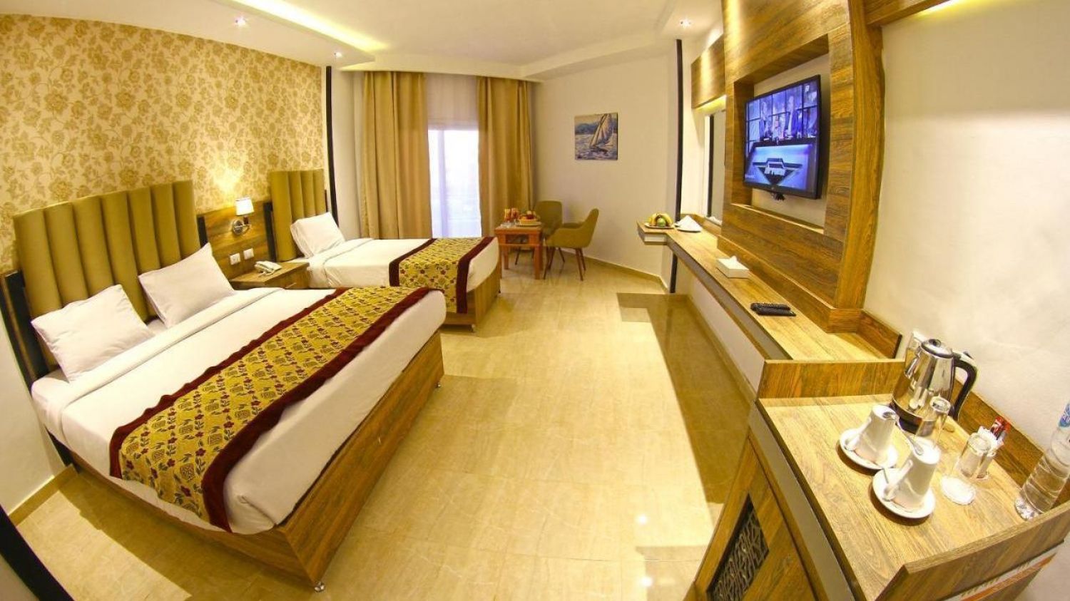 Bellagio Resort and Spa е адаптиран от стандартен тип хотел в луксозен стил стаи, фамилни стаи и специално проектирани апартаменти - всички с уникална гледка към морето, а някои се намират и между водите на Червено море. Внедрявайки най-съвременните хотелски технологии и удобства, хотелът гарантира, че Вашият престой ще бъде релаксиращ, като същевременно съчетава възможно най -доброто качество и комфорт, с автентичния аромат на Червено море.