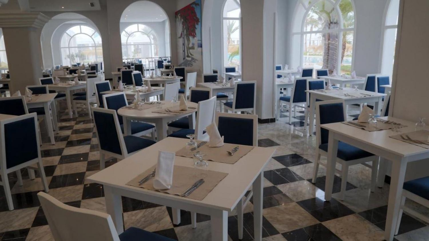Основен ресторант El Menzel, а ла карт ресторант Il Gusto с тунизийска и средиземноморска кухня (платен, 1 безплатно посещение за престой, след предварителна резервация), а ла карт ресторант La Pergola с италианска кухня (след предврителна резервация), а ла карт ресторант на плажа Le Sporting Beach (след предварителна резервация, от юни до септември), лоби бар Blue, бар басейн Granada (май-октомври), бар на плажа Le Sporting Beach (май-октомври), диско бар Le Mirage (веднъж седмично), мавританско кафене Andalusia (наргиле - срещу заплащане), открит басейн с детска зона, закрит басейн (отопляем през зимата), СПА център, конферентна зала, магазини, банкомат.