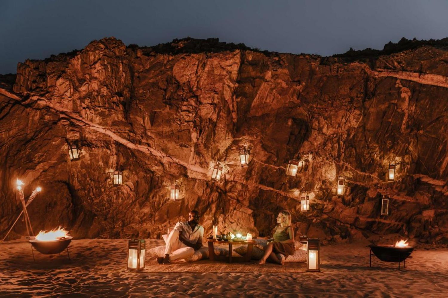 Гарантираме, че ще имате една от най-вълшебните и приказни нощи, за които дълго ще разказвате. С удобни и мощни джипове ще стигнем до известния Empty Quarter (Празен квартал) в пустинята Руб ал Хали, до високите пясъчни дюни, които по залез слънце сякаш поглъщат топлия оранжев цвят на слънцето и превръщат във фин червен пясък. След вълнуващото пътуване сред дюните, ще прекараме нощта в къмпинг и ще се насладим на типична бедуинска вечеря на свещи, на фона на звездното пустинно небе. След изгрев предстои закуска в пустинята. На връщане ще минем през Вади Дока, долината с дърветата на тамяна, черните камили и легендарния град Убар. Незабравимо приключение.