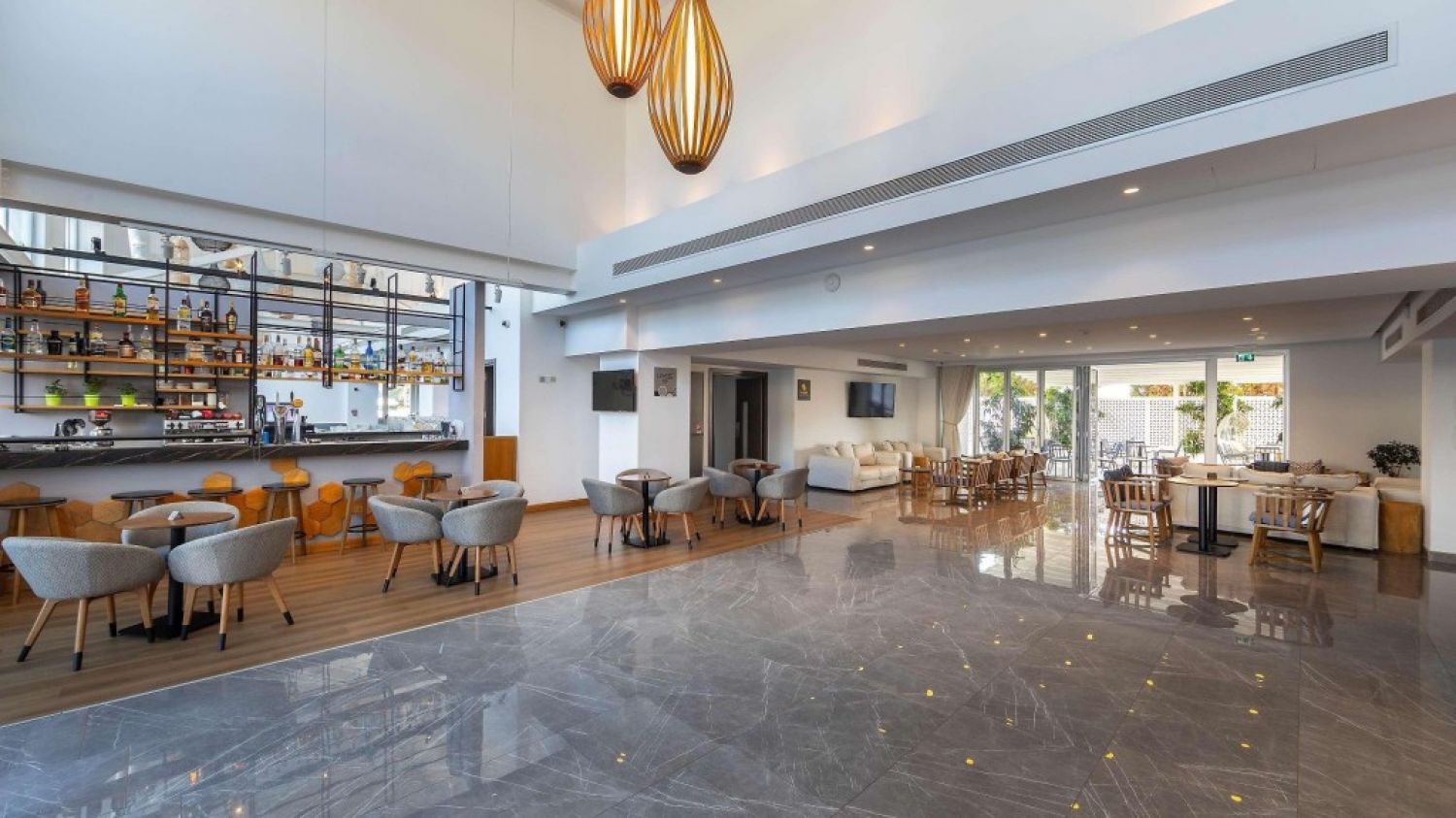 На територията на хотела: Външен басейн с шезлонги и чадъри и вътрешен басейн. Фитнес зала, сауна и нощен бар Revo, разположен на обширната тераса- солариум на покрива на хотела. Снек барът до басейна, Bloom, предлага напитки и междинни хранения през деня, а ресторант Lemoni ще Ви очарова с качеството на средиземноморската си кухня. Лаундж бар и суши ресторант, коферентна зала.