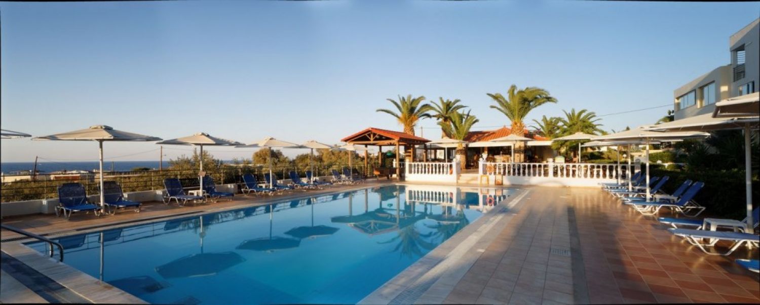 Хотелът е построен в традиционен гръцки стил и е разположен на хълм с красива гледка към морето. Подходящ за семейна почивка.