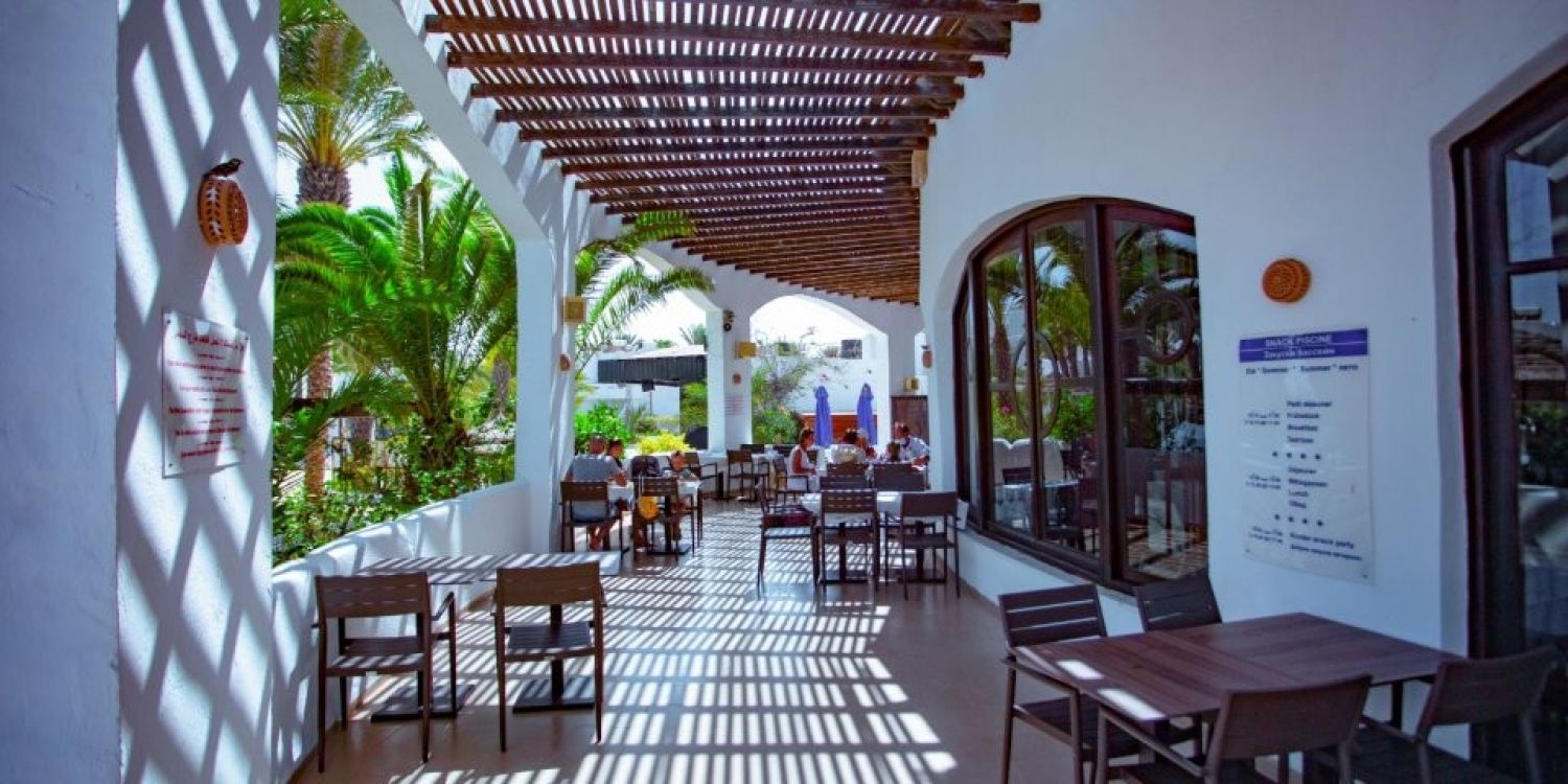 Разположение : Fiesta Beach се намира на един от най-красивите плажове на остров Джерба. Този ол инклузив хотел, проектиран като село Джербиен е с голяма зелена територия и широк великолепен плаж. Хотелът се намира в района на Мидун, на 8 км от центъра на града, на 15 км от столицата на острова Хумт Сук. Летище Джерба-Зарзис се намира на 25 км. Перфектен избор за семейства с деца.