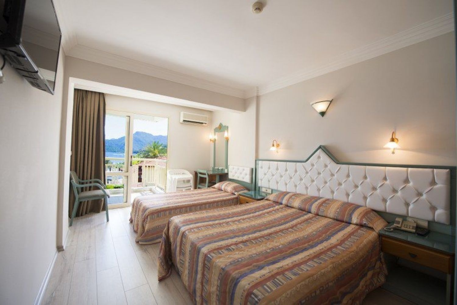 вана сешоар индивидуален климатик телевизор телефон мини-бар (празен, зареден - платено) сейф (на рецепцията, платено) подова настилка - мокет балкон или френски балкон почистване на стаята - ежедневно смяна на спалното бельо - 3 пъти седмично