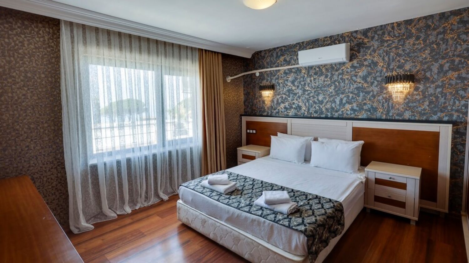 Хотелът разполага с 235 стаи, разположени в 4 блока: стандартни стаи Standard (27 м2), Superior (32 м2, с изглед море), Family (52 м2, дневна и спалня). Всички стаи са оборудвани с климатик, телевизор, телефон, баня с душ, сешоар, минибар (всекидневно зареждане на вода - безплатно), сейф (срещу заплащане), балкон, Wi-Fi интернет. Почистване на стаите - всеки ден, смяна на спалното бельо - 2 пъти в седмицата.