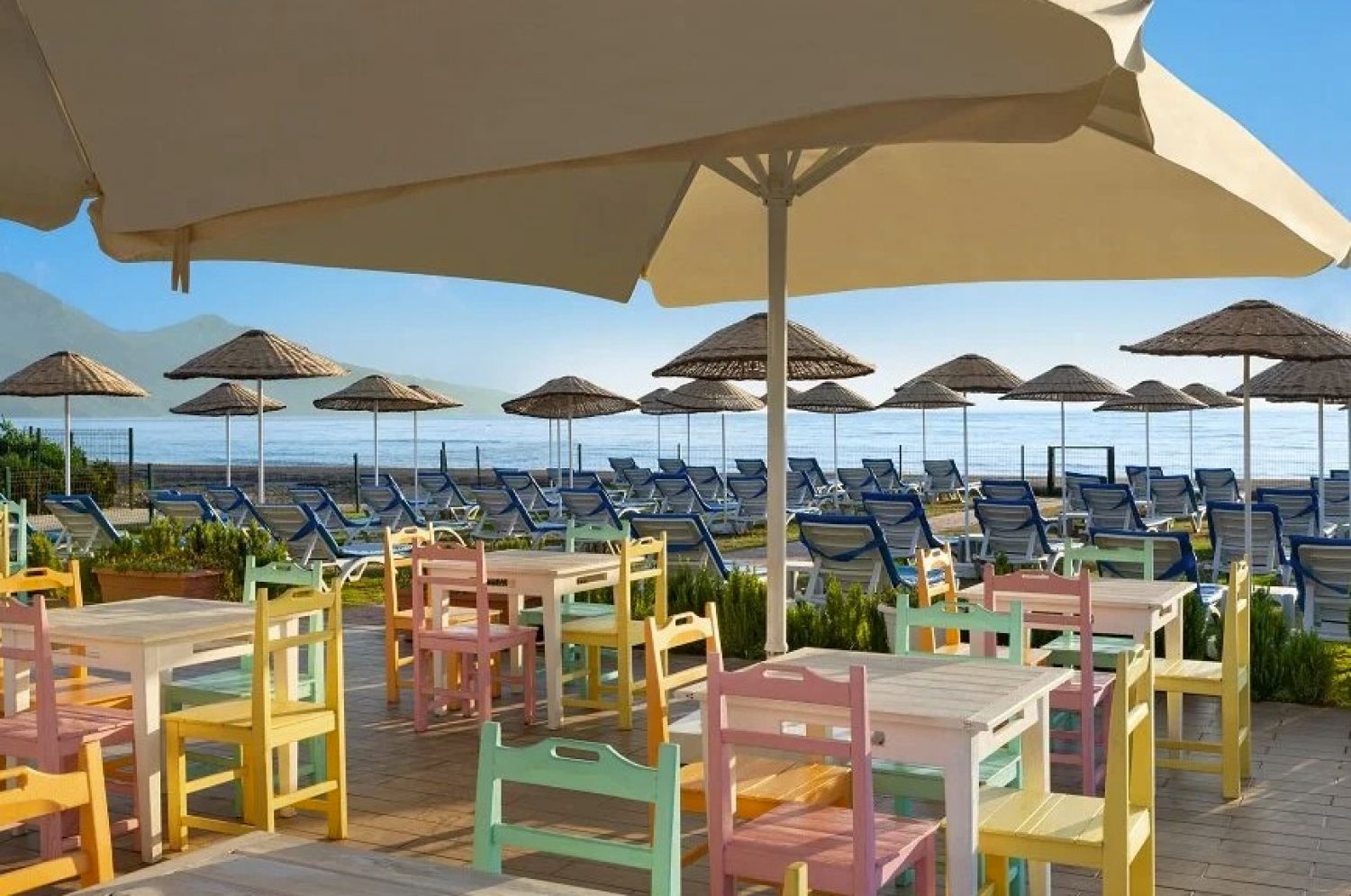 Плаж: Собствен, пясъчен на 8 км от хотела с осигурен безплатен шатъл, чадъри, шезлонги, матраци на плажа и при басейните – безплатно. Бар на плажа.