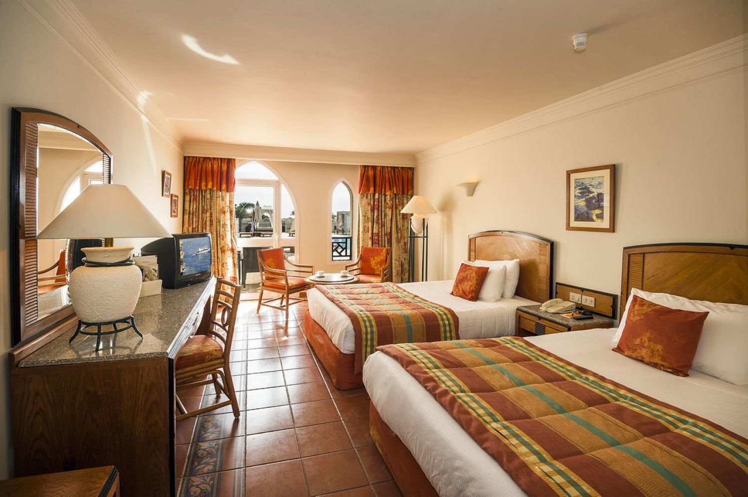 Хотелът разполага с 670 стаи, от които Superior стаи (35 кв.м.), Preferred стаи (40 кв.м.), Стаи изглед море (40 кв.м.), Семейни стаи (44 кв.м. 2 спални), Апартамент Royal (50 кв.м.), Президентски апартамент (50 кв.м.), Junior апартамент (50 кв.м.). Всички помещения са оборудвани с климатик, телевизор, телефон, баня с вана/ душ, сешоар, сейф, минибар, кана за кафе и чай, Wi-Fi (платен), балкон.