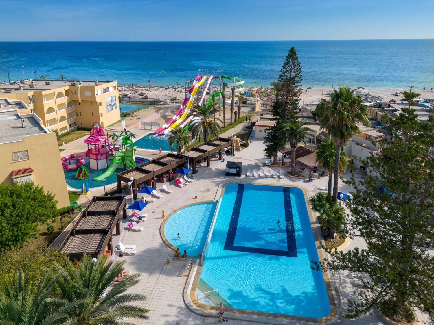 Основен ресторант, снек ресторант, 1 а ла карт ресторант (тунизийски - срещу заплащане/с предварителна резервация, съгласно концепцията на хотела/1 безплатно посещение при минимум 7 нощувки), 2 бара, 2 открити и 2 закрити басейна, конферентни зали, магазин, обмяна на валута, паркинг.