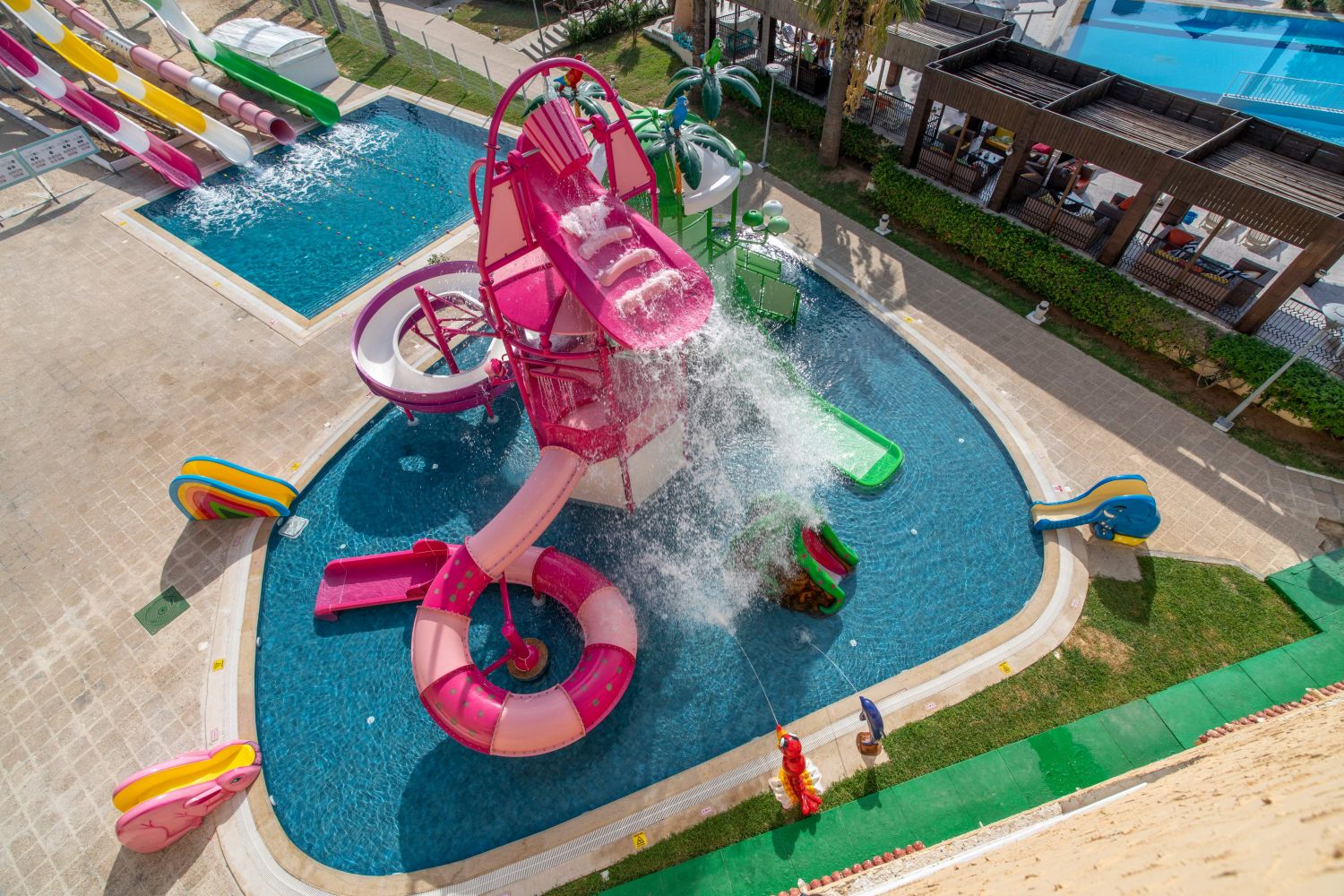 За децата: 2 детски басейна, мини пързалки, мини клуб (4-12 год), бебешка кошара (безплатно, след предварителна заявка, според наличността), детски столчета в ресторантите.