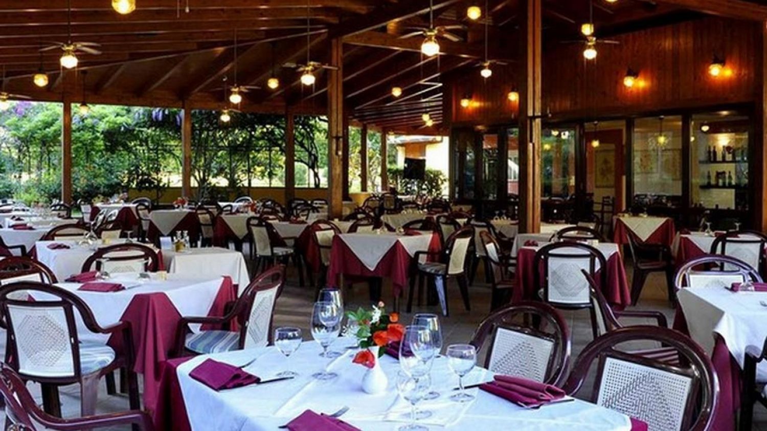 Ресторантът е открит от 3 страни, с изглед към градините и пищната зелена гора. Отворен за закуска, обяд и вечеря, ресторантът е специализиран в южната италианска кухня.