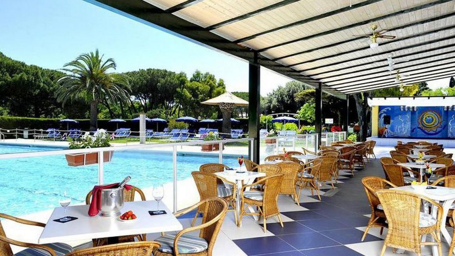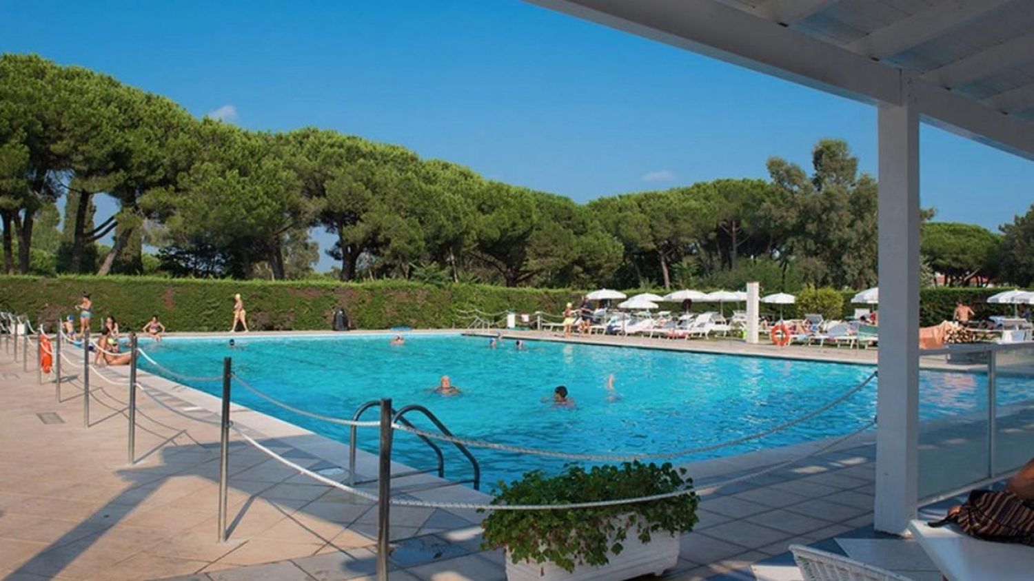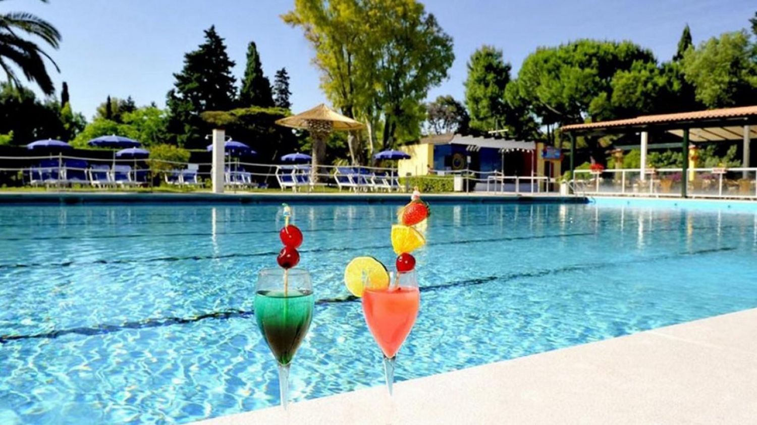 Големият и детският басейн са разположени близо един до друг. В парка около тях има разположени шезлонги и чадъри. Има специално оборудвана зона за хора с трудна подвижност.