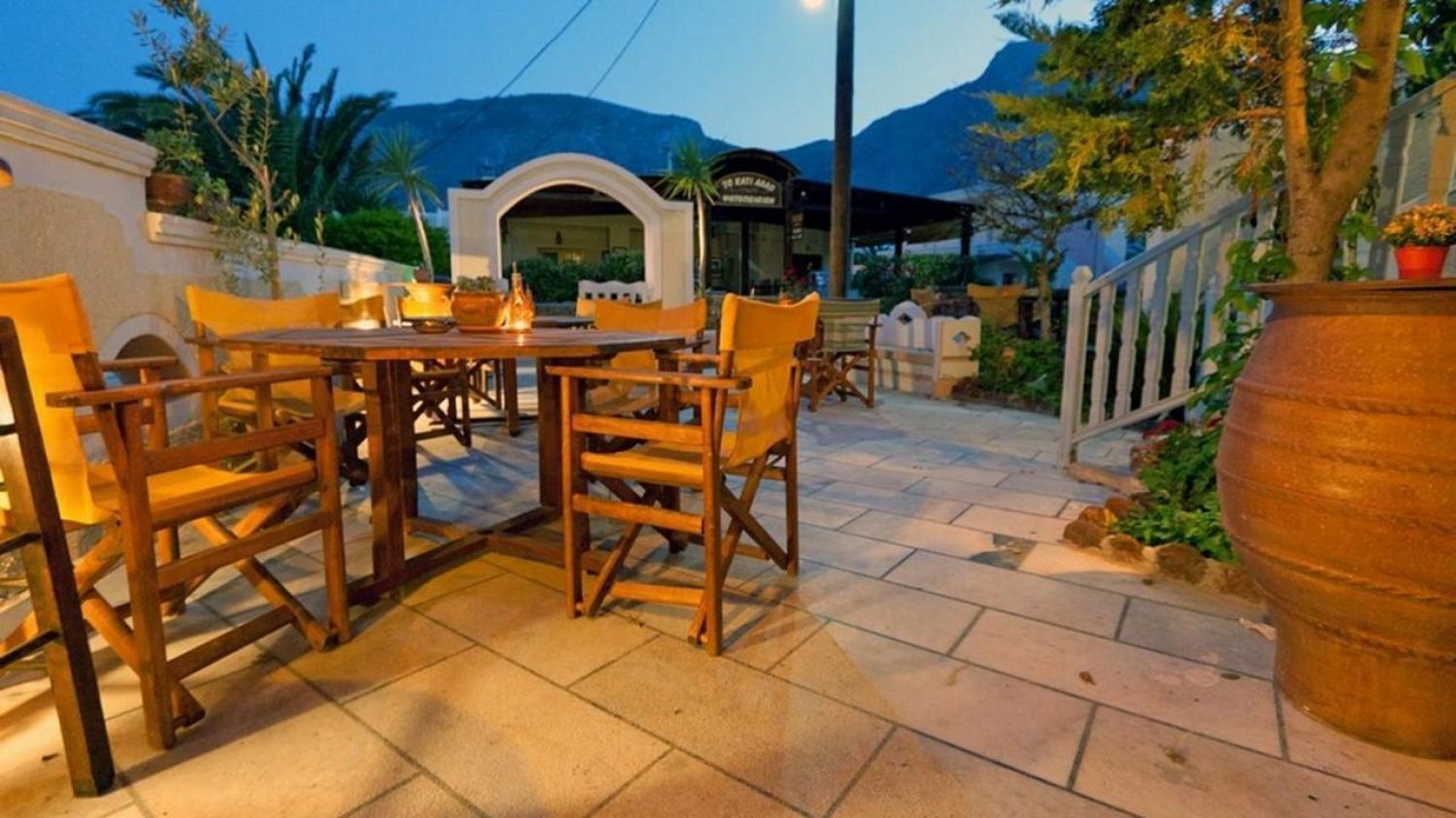 Вечерта има възможност за посещение по желание на най-голямата таверна на Санторини - ДИМИТРИС, с включена богата вечеря от местни ястия на блок-маса, безалкохолни напитки, вино и бира, както и богата фолклорна програма.