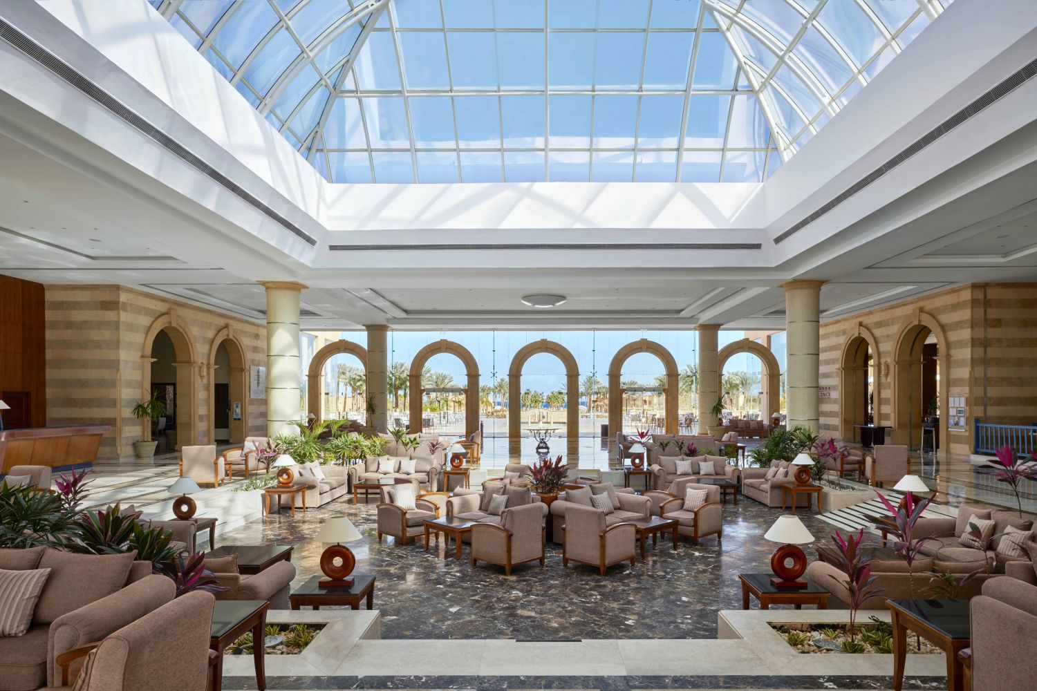 Собствен плаж, пясъчно-чакълест, с корали и рифове. Чадъри, шезлонги и плажни кърпи на плажа и при басейните – безплатно.