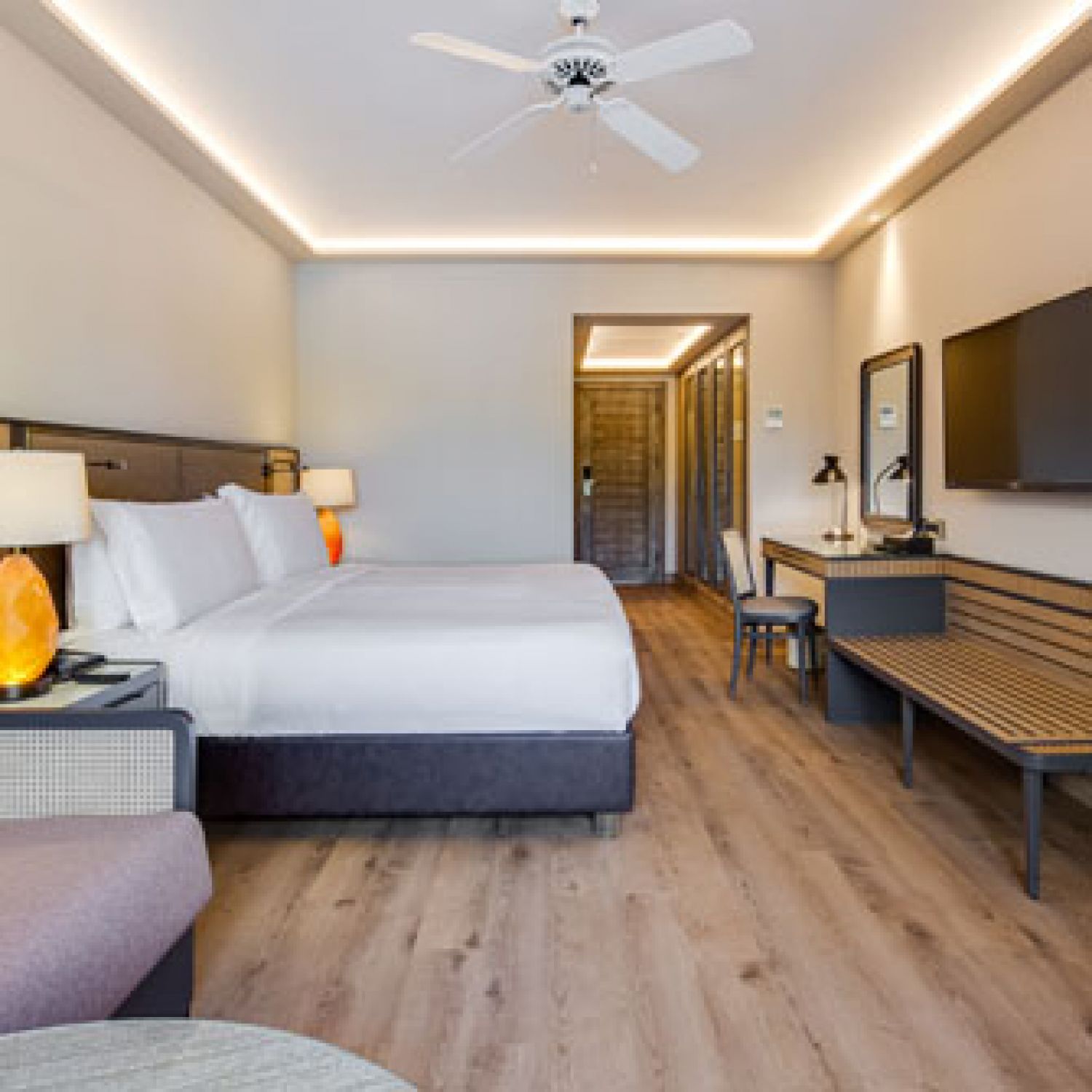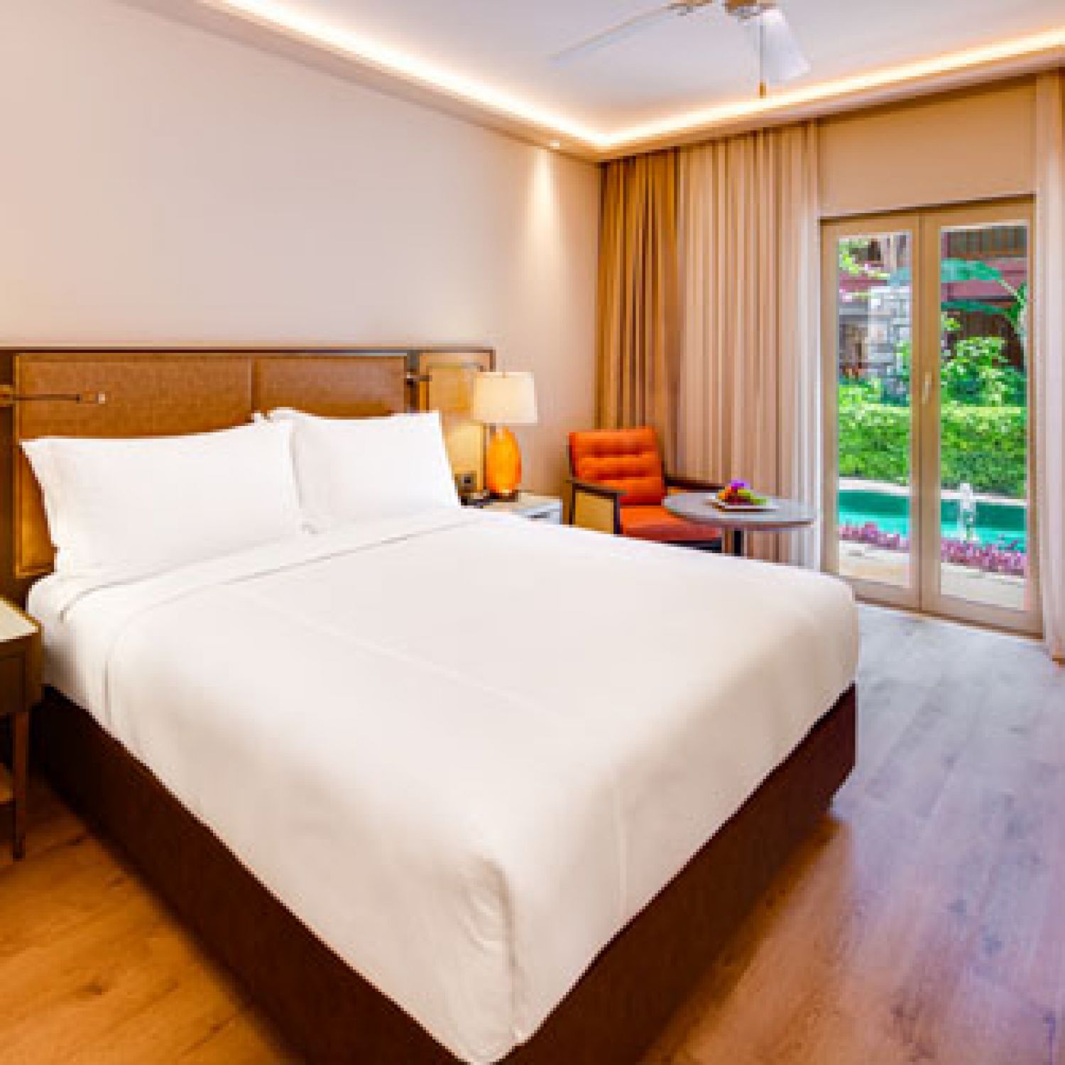 Стаи Standard Room (1 спалня, 1 баня - 33 м²), Superior Room (изглед градина, 1 спалня, 1 баня - 33 м²), Deluxe Garden View (изглед градина, 1 спалня, 1 баня - 35 м²), Deluxe Pool View (изглед басейн,1 спалня, 1 басейн - 35 м²), One Bedroom Suite Pool View (изглед басейн, спалня със зона за сядане, 1 баня - 55 м²), One Bedroom Suite Sea View (изглед море, спалня със зона за сядане, 1 баня - 55 м²).