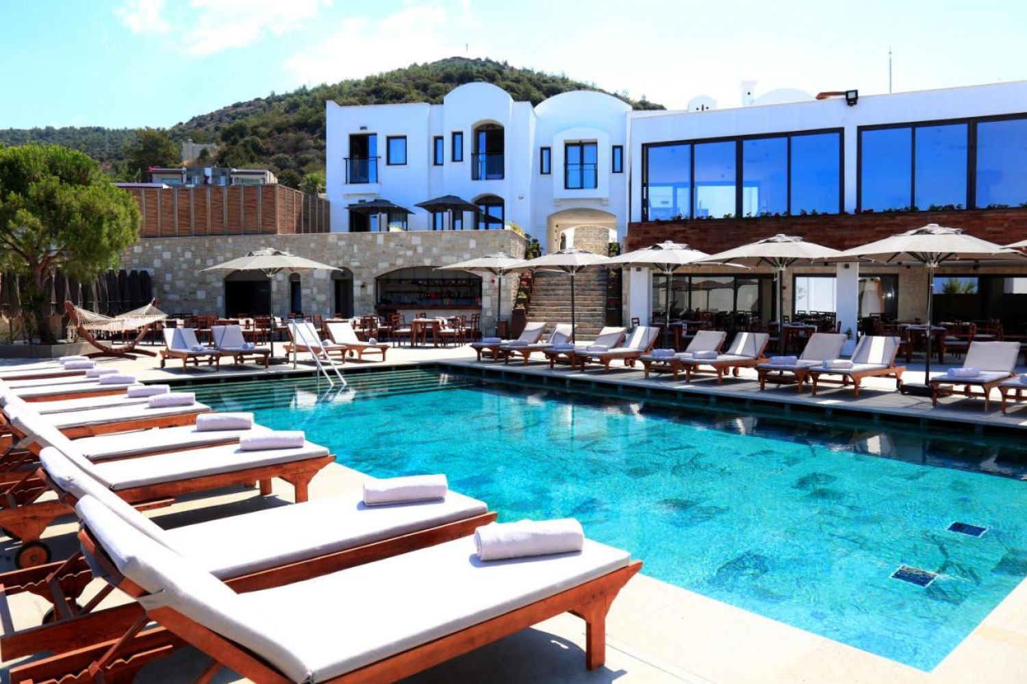 Намира се на 35 км от летище Бодрум, на 2 км от центъра на Бодрум, на 150 м от брега на морето, на обща площ от 7 245 м². Реновиран 2015 г.