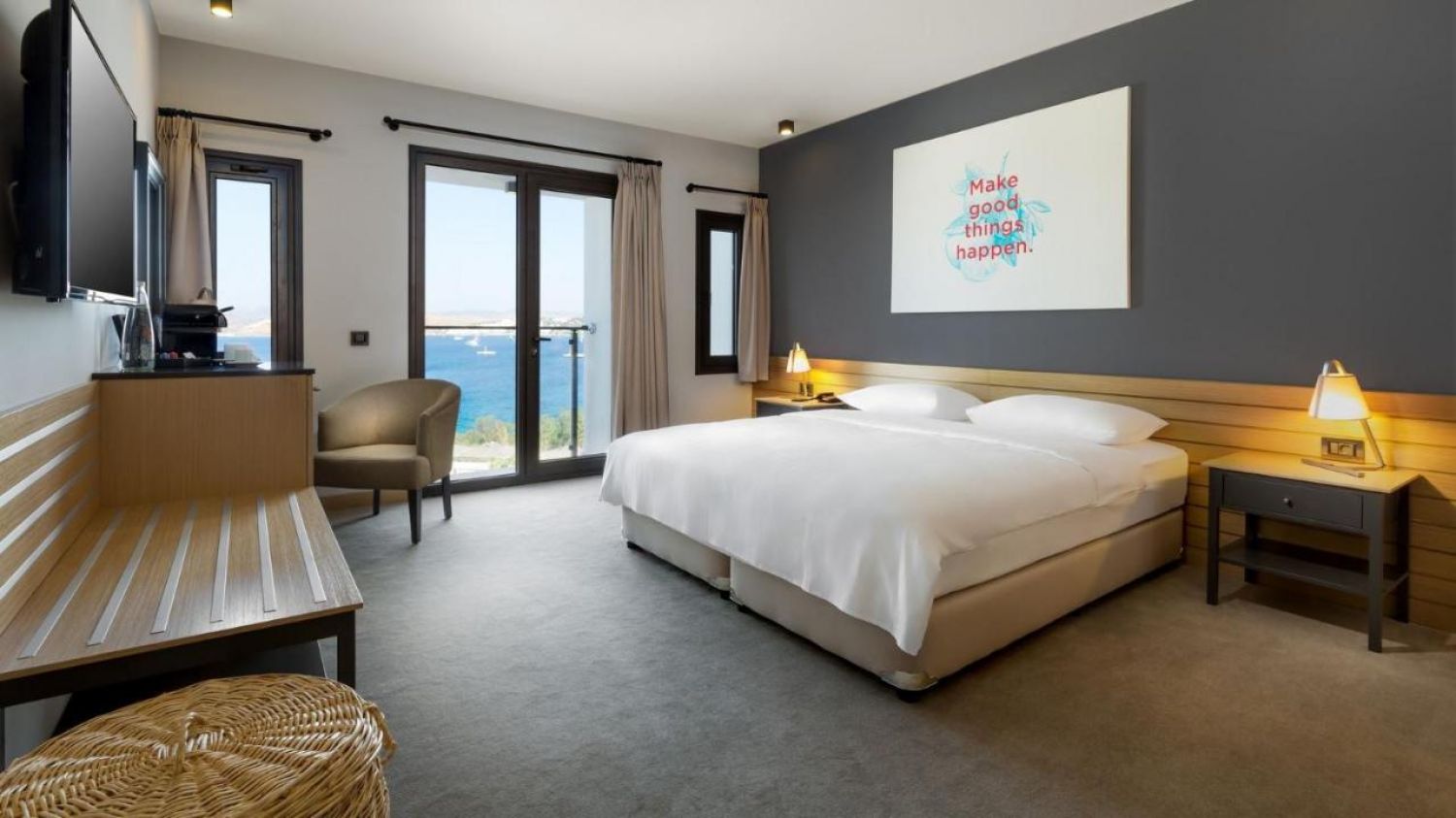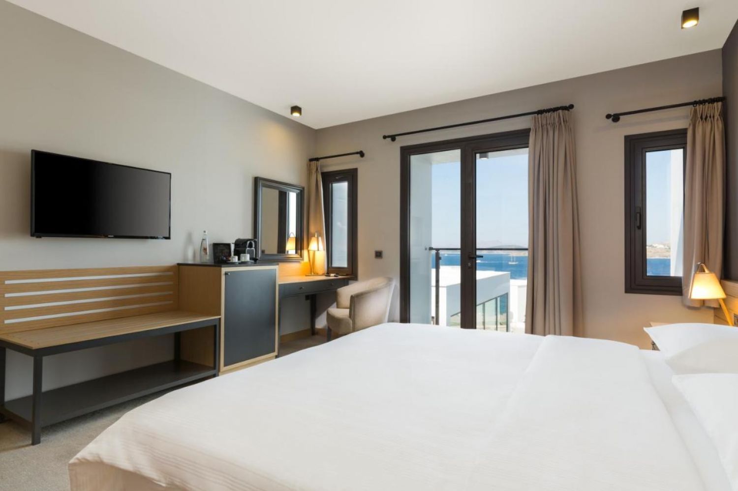 Стаи Standard Room Garden View Terrace (стандартна стая с тераса или френски балкон, с изглед градина - 25-30 м²), Standard Room Sea View French Balcony (стандартна стая с френски балкон, с изглед море - 25-30 м²), Standard Room Sea View with Balcony (стандартна стая с балкон, изглед море - 25-30 м²).