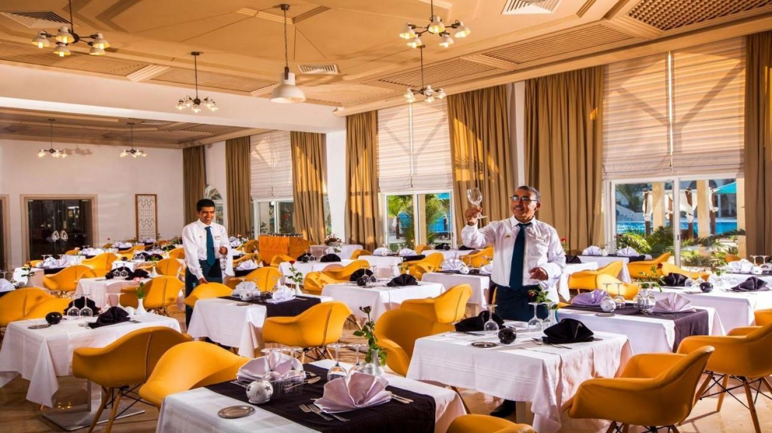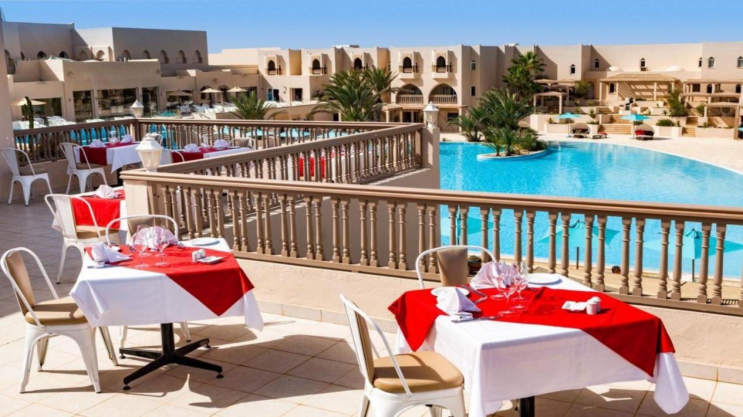 Основен ресторант – бюфет с интернационална и тунизийска кухня. Предлага закуска, обяд и вечеря, включително тематични вечери.