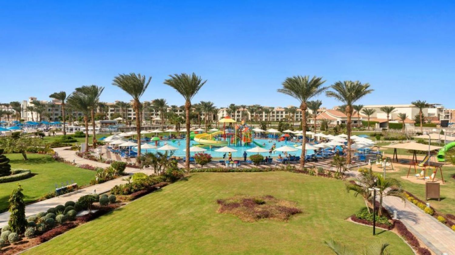 Pickalbatros Dana Beach Resort е голям 5-звезден курорт с просторна и добре поддържана зелена територия, канали с лодки, няколко открити басейна и директен достъп до плажа. Комплексът разполага с основен ресторант, тематични ресторанти, множество барове, амфитеатър за вечерни шоу програми, СПА център, спортни съоръжения, детски клуб и търговска зона. Хотелът е подходящ основно за семейства с деца и двойки, които търсят спокойна all-inclusive почивка.