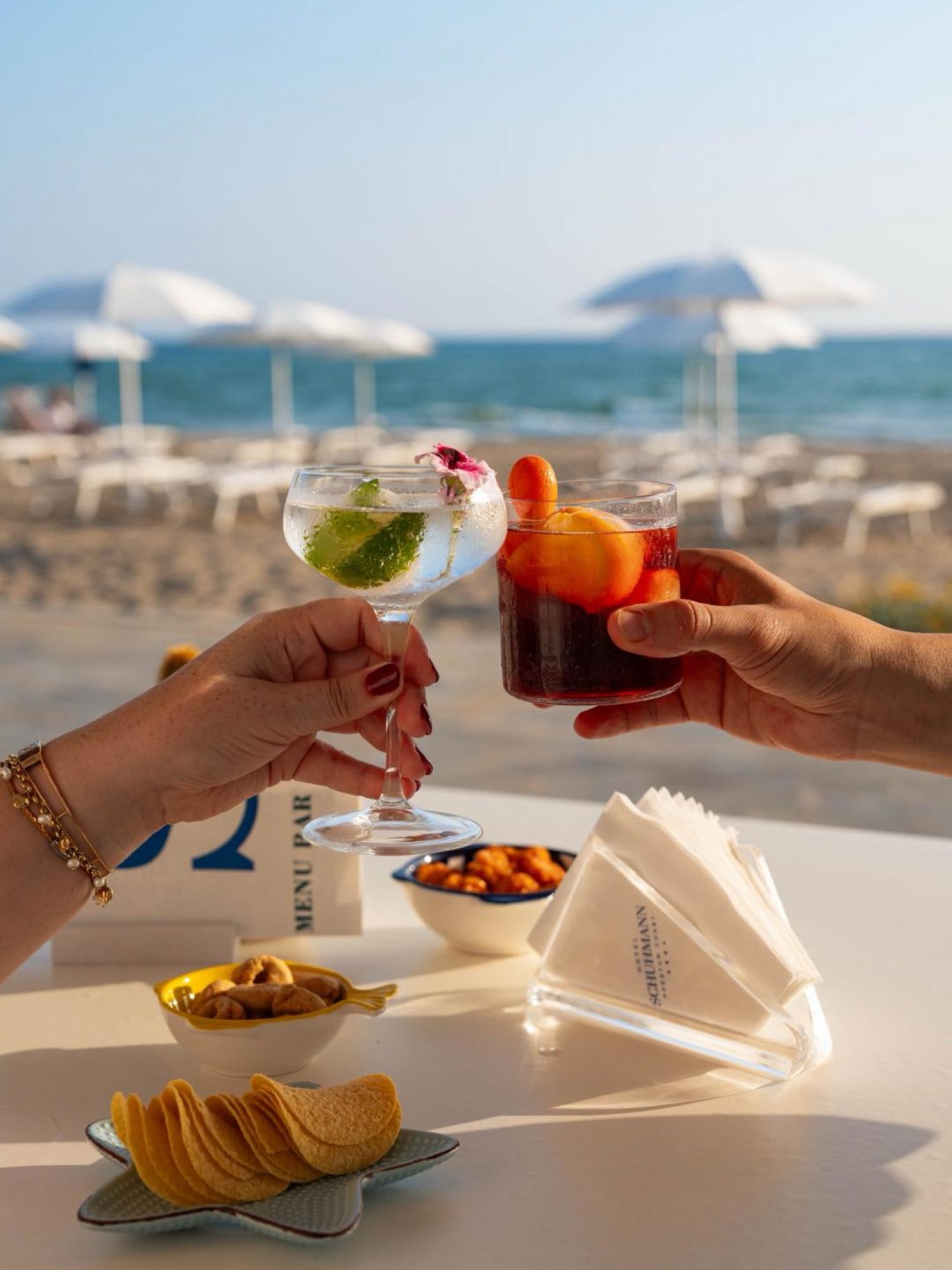 Собствен, пясъчен.Чадъри и шезлонги на плажа се предоставят в периода от юни до септември. На първи и втори ред шезлонги и чадъри са срещу заплащане и изискват предварителна резервация, след трети ред са безплатни.