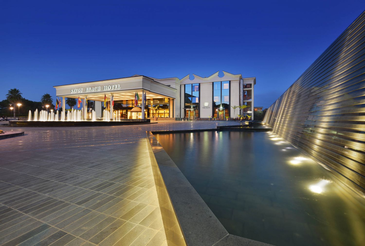 2 основни ресторанта, ресторант на плажа, зимна градина, 4 бара, винена изба, 2 открити и 1 закрит басейн, СПА център, конферентна зала, паркинг.