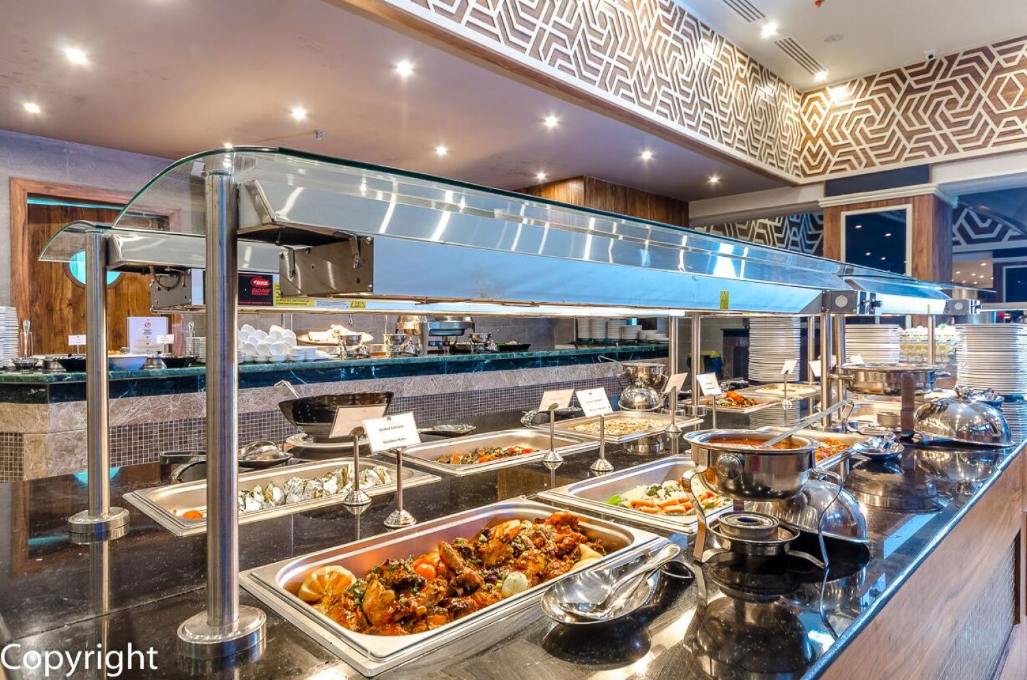 Основен ресторант, 4 а-ла-карт ресторанта (италиански, монголски, китайски, гръцки), за които се изисква предварителна резервация и дрескод, 6 бара, дискотека, 3 открити басейна (с подгряване през зимния сезон), 13 водни пързалки за деца, 30 водни пързалки на територията на хотел Titanic Resort & Aqua Park, разположен на 200 метра от хотела – безплатно, 2 тенис корта (с твърдо покритие), мини голф, СПА център, конферентна зала, магазини.