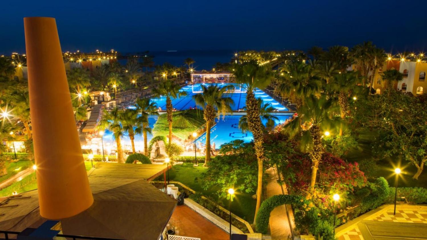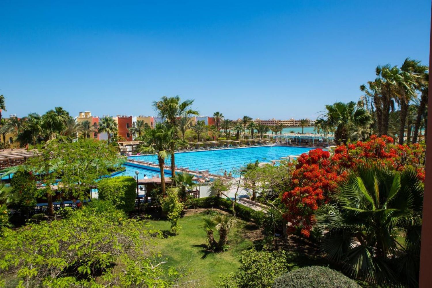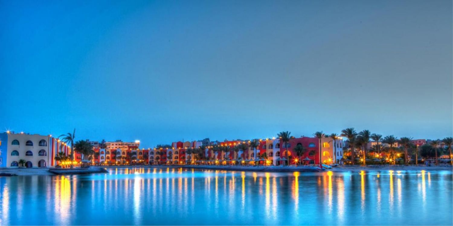 Намира се на 8 км. от летище Хургада, на 3 км. от центъра на Хургада, на брега на морето.