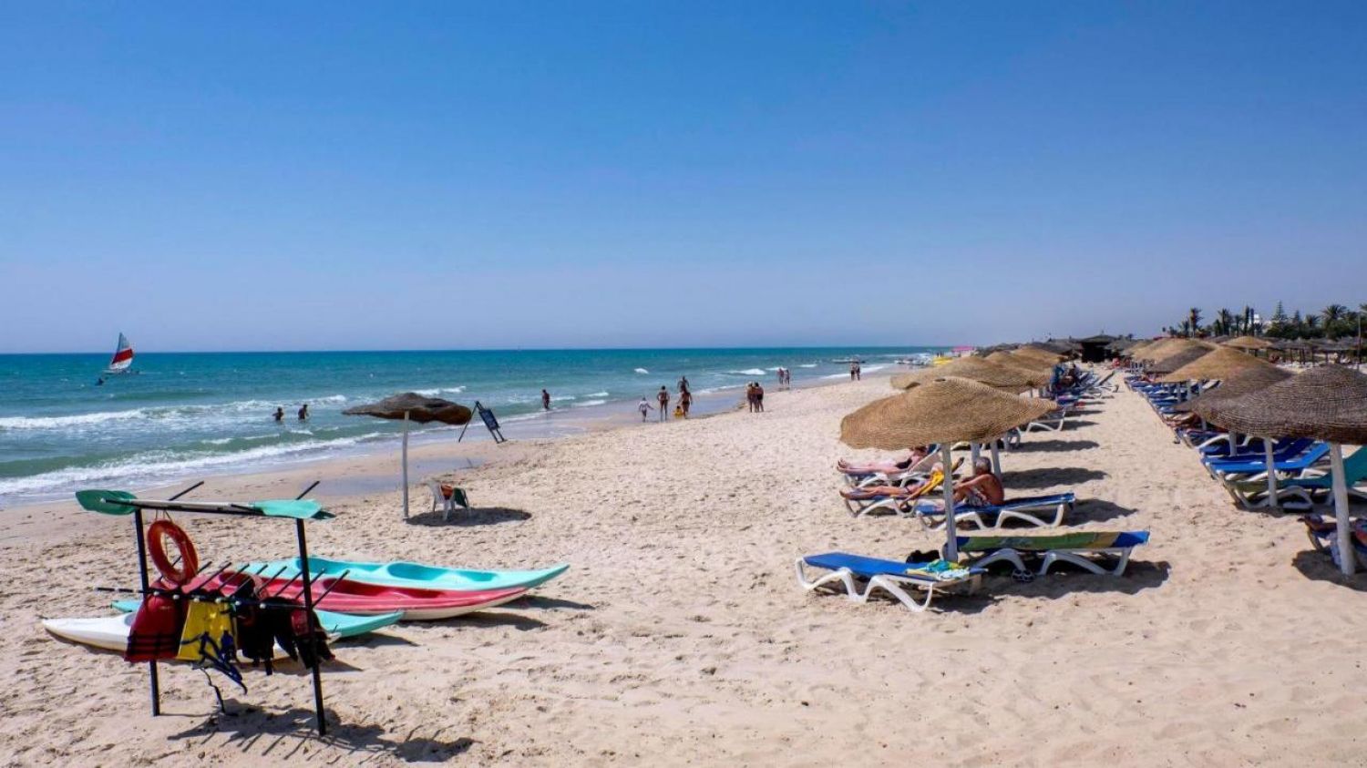 - Шезлонги, чадъри и кърпи на плажа и при басейна