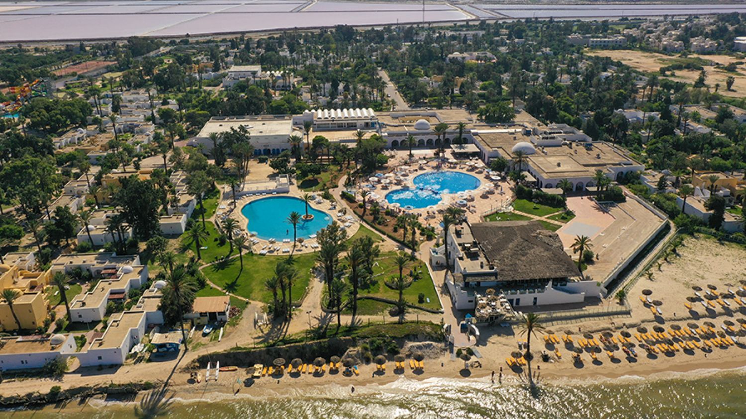 Собствен, пясъчен плаж пред хотела. Чадъри и шезлонги на плажа и при басейна - безплатно. Плажни кърпи - срещу депозит 30 TND и такса 1 динар на ден.