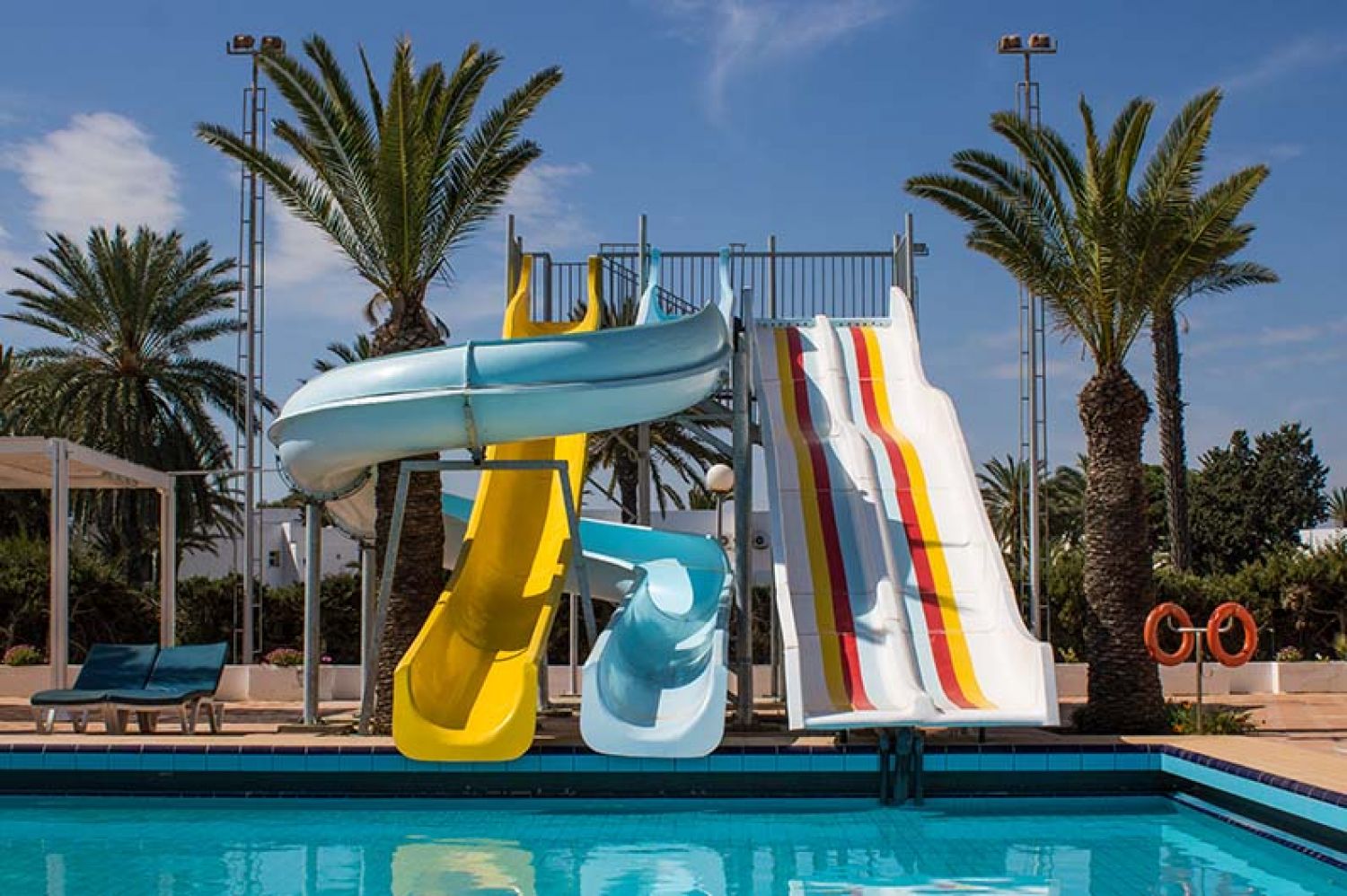 Основен ресторант Yasmine, пицария, лоби бар, бар на плажа, мавританско кафене, бар на басейна, 2 открити басейна, денонощна рецепция, анимация, обмяна на валута, магазин.