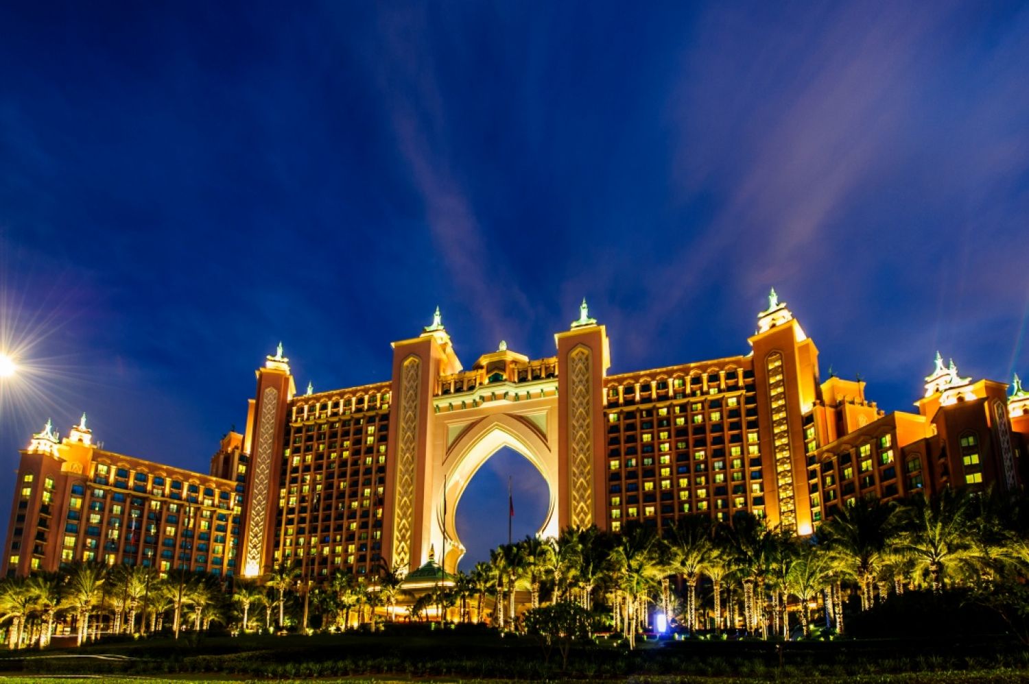 Изкуственият остров Палма-Джумейра — Ви кани да посетите неговите приказни земи, където при хотел Атлантис е открит невероятен комплекс с водни атракции "Аквавенчър" (Aquaventure). Огромният воден парк заема територия от 17 хектара и разполага с плажна ивица с дължина 2 км - атракции с живи акули, аквариуми с риби-скат и много други водни видове. Също така, можете да поплувате с делфини в лагуната! Това уникално удоволствие, можете да получите само в рамките на тази екскурзия.