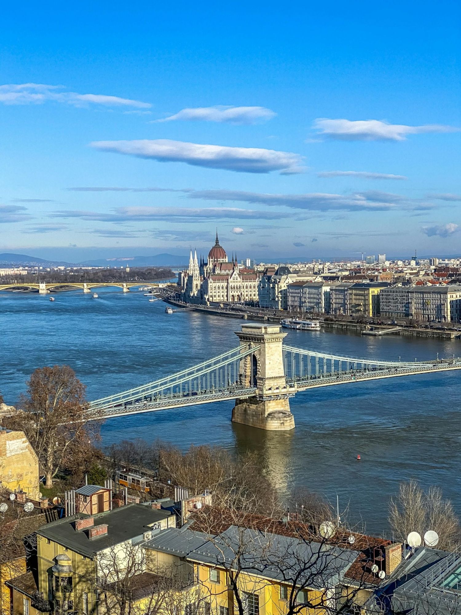 Вечерна разходка с корабче по Дунав - срещу доплащане Разходката по реката дава една съвсем друга гледна точка към града и накацалите по стръмния склон на Буда, впечатляващи сгради. Вечер те са умело осветени, а останалата част от хълма умишлено затъмнена. Така у нас остава усещането сякаш тези сгради, макар и внушителни, феерично се реят във въздуха като в някоя вълшебна приказка. По време на разходката се виждат всички забележителни сгради на Будапеща, като започнем от Парламента, минем през Рибарските кули, Цитаделата, Дворцовия хълм и стигнем до Националния пазар, интересната сграда на чисто новия Национален театър и всички мостове над Дунав, най-забележителния сред които Верижният мост Сечени.