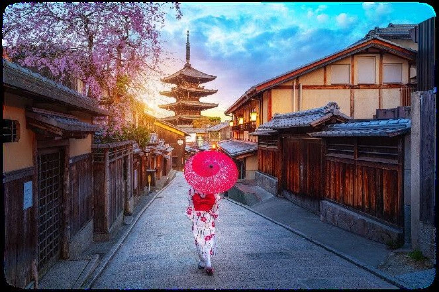 Ще започнем нашата обиколка с посещение на замъка Ниджо, завършен в началото на 17 век и предназначен за резиденция на първия шогун Токугава Йеасу. Той има два концентрични кръга укрепителни съоръжения и включва дворците Ниномару и Хонмару, както и множество допълнителни сгради и градини. Ниномару е построен от дървесината на кипариса хиноки. Декорацията му от пищни златни листа и сложна дърворезба е изработена да впечатлява посетителите и да показват силата и богатството на шогуните. В автентичната обстановка на двореца е заснет сериалът „Шогун”. Едни от най-големите атракции са „пеещите подове” на коридорите на замъка и красивата градина, заобикаляща двореца. И днес водните площи, дървените огради, чаените павилиони, каменните украси и мостове хармонично допълват феерията от цветя, храсти и дървета, които пленяват посетителите през всички сезони. Туристическата ни програма продължава с посещение на дзен будисткия храм Кинкаку-джи, построен сред красив парк на брега на езеро, храмът впечатлява с олекотената си дървена конструкция и двуетажния позлатен покрив, заради който е известен също и като Златният павилион. Трите етажа на храма „Кинкаку-джи“ са изградени в напълно различни стилове. Първият етаж е издигнат в стил, следващ предписанията за жилищни постройки. Второто ниво се е използвало като резиденция на самураите и е направено в духа на военната японска архитектура. Третият етаж е изграден в традиционен китайски стил. Градината около храма е проектирана в стил Муромачи, а пред постройката има малко изкуствено езеро, заобиколено от алеи и екзотична растителност. Във водата има четири големи камъка, които според японската митология символизират закотвени през нощта лодки, които пътуват към Острова на вечния живот. Храмът е национален исторически обект с особено значение и е едно от 17-те места, включени в комплекса „Древно Киото”, който е под закрилата на ЮНЕСКО. Продължаваме към Арашияма - невероятна красива гориста област в западните покрайнини на Киото, Япония, която е най-привлекателна през април, когато цъфтят черешовите дръвчета. Районът е популярна дестинация още от периода Хеян (9-12 век), когато благородниците са отивали там, за да си почиват сред красивата природа. Най-голямата забележителност на Арашияма е моста Тогескио. Обяд в местен ресторант. Следобяд посещение на храма Тенрю-джи и известната бамбукова гора. Храмът Тенрю-джи е дзен храм, основан от Ашикага Такауджи, първият шогун от ерата Муромачи през 14 -ти век. Такауджи първоначално е служил на император Годайго, но по-късно се е обърнал срещу него. Но впоследствие се твърди, че Такауджи се е борил с непрестанните кошмари на мъртвия император. Затова той решил да построи Тенрю-джи, за да утеши духовете на император Годайго. Назначеният дзен майстор Мусо-сосеки, основателят на храма, също е проектирал известната му градина. Храмът е бил опожаряван 8 пъти, а сегашният храм е построен в края на 19 -ти век. Но ландшафтната градина е запазила същата форма, каквато е била през 14 -ти век. Връх Арашияма в задната част на градината е заимствана като част от ландшафта. Храмът първоначално е бил много по-голям от сегашния, простиращ се до река Кацура.
