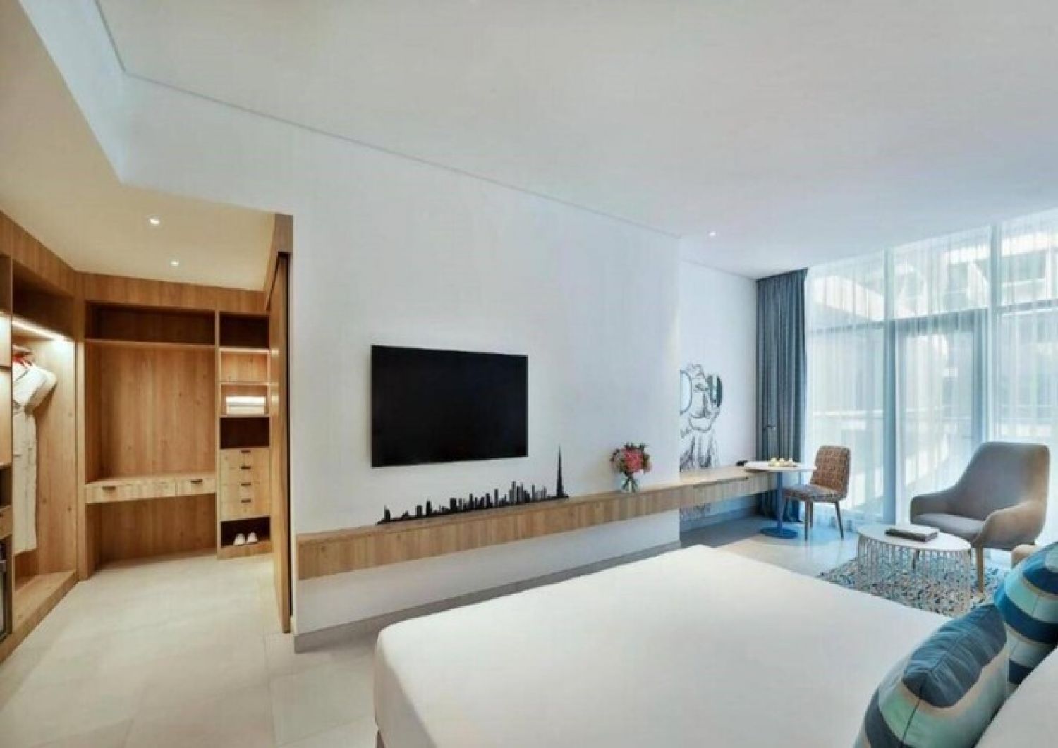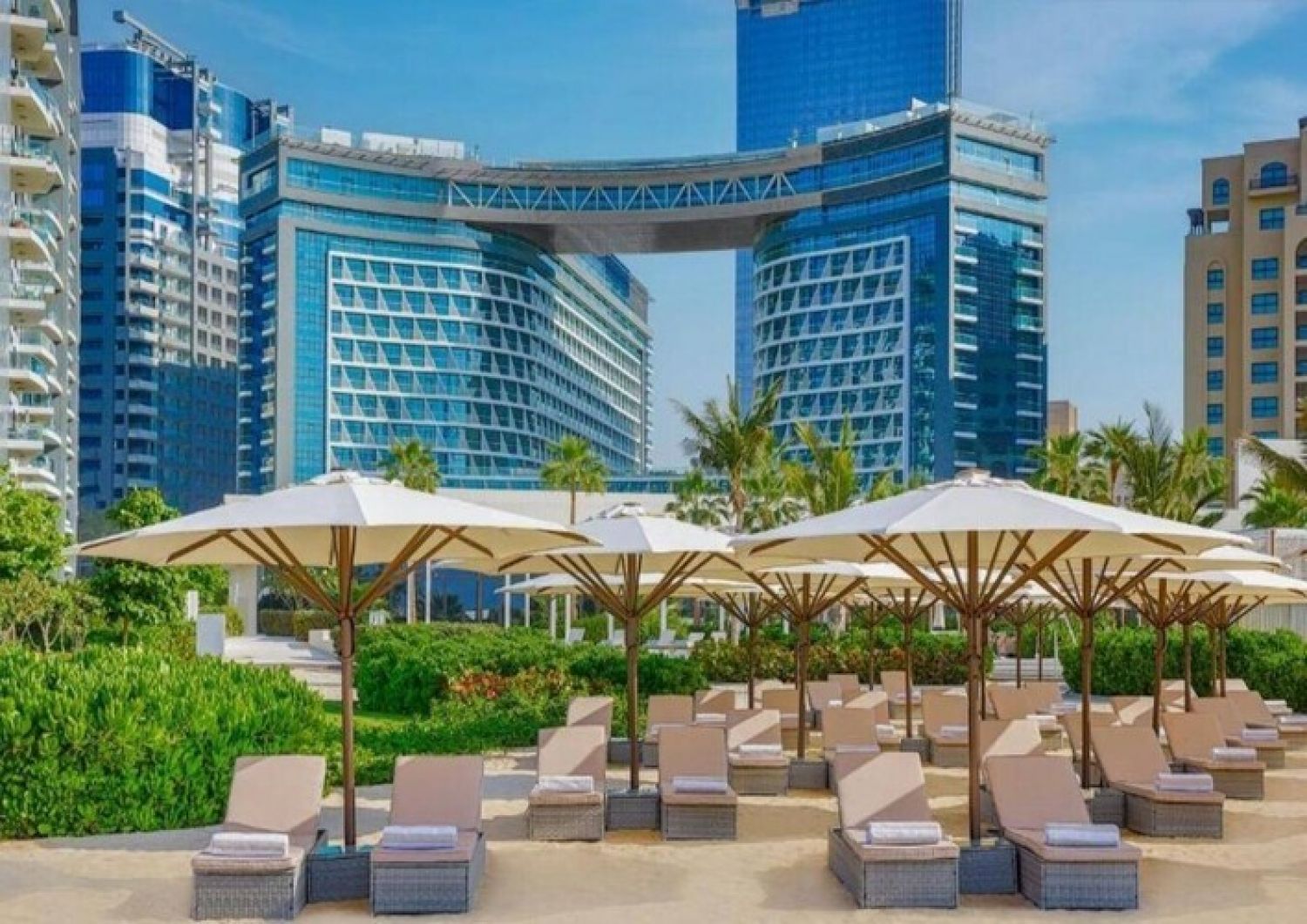 Стилен хотел с открит басейн се намира на Палм Джумейра, близо до търговския център Nakeel и крайбрежната алея The Pointe с фонтани.