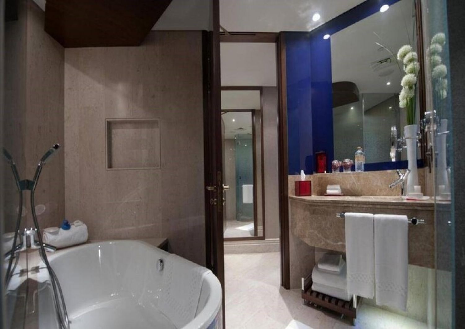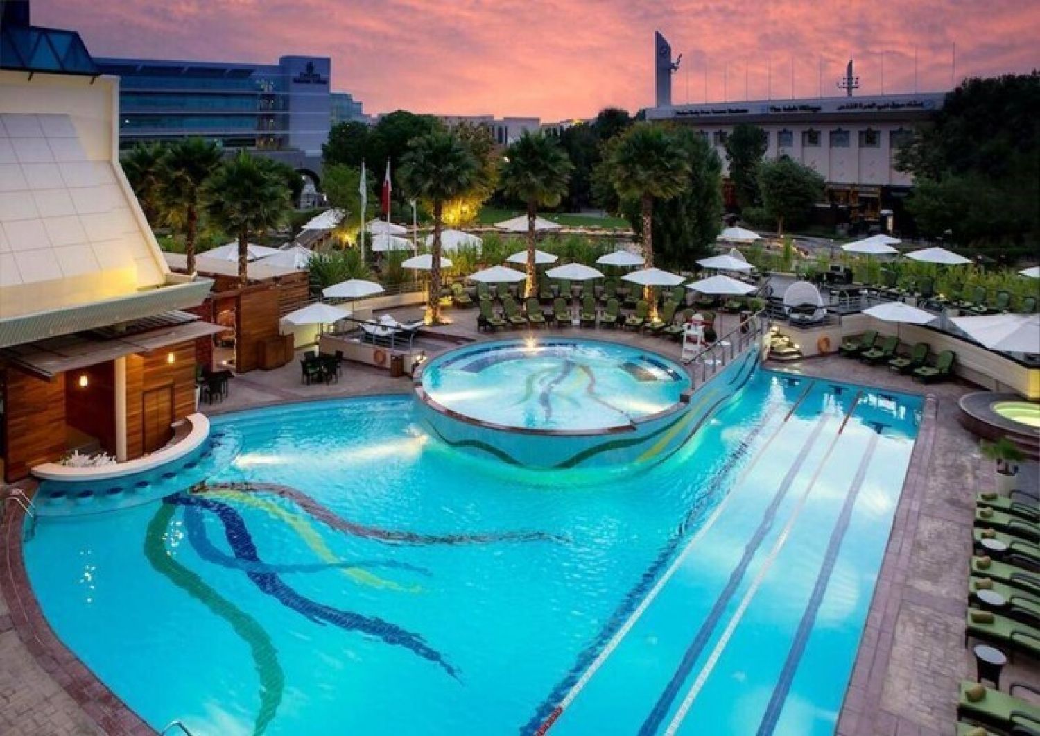 На територията на хотела: Хотелът разполага с четири ресторанта: южноазиатски, кубински, морски дарове и здравословна храна. Има също една банкетна зала, два плувни басейна, AkaruSpa и безплатен Wi-Fi. Има безплатен транспорт до плажа и търговските центрове, включително Dubai Mall. За бизнес събития има 25 конферентни зали.
