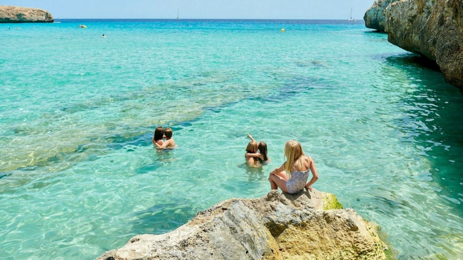 Поленса до плажа на Форментор. Свободно време на плажа Форментор за плуване и слънчеви бани. Панорамна